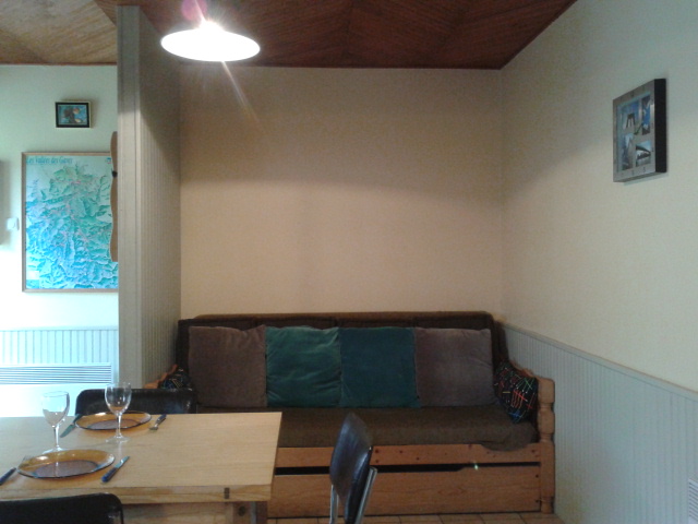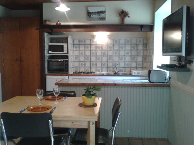 Gîte de plain-pied ouvrant sur une cuisine avec coin détente (canapé lit (lit gigogne avec matelas 90), salle d’eau, wc indépendant, 1 chambre (1 lit 2 pl.), terrasse, salon de jardin, étendoir à linge,barbecue, terrain non clos commun avec l’autre gîte 4 personnes mitoyen. Local indépendant pour vélos, ski,autres….