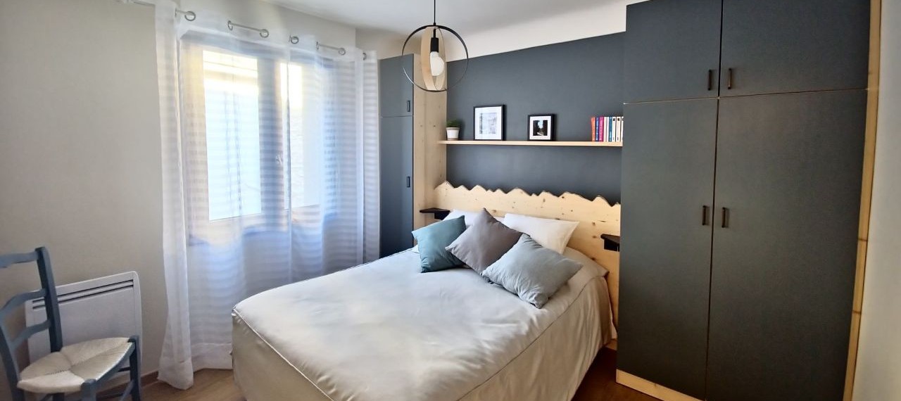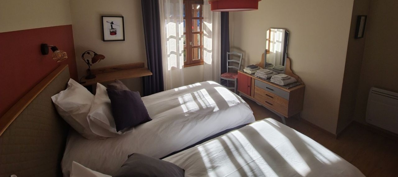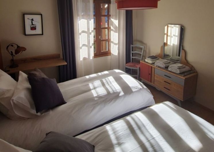 Séjour avec cheminée et canapé convertible 140. 2 chambres avec rangements, penderies. Chambre avec lit 180*200 ou 2 lits 90*200. Chambre avec lit rétro éclairé 140×190. Cour commune clôturée au RDC. Options/Formules: ménage fin de séjour, location linge de lit, maison, toilette ou forfait bois, réservables jusqu’à la veille de votre arrivée.
