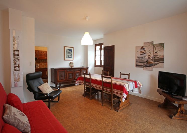 Appartement de 62m² comprenant : Une cuisine séparée et fermée, un séjour salon avec un canapé lit, une chambre (1 lit en 140 et 1 lit en 90), une salle d’eau (douche) et un WC indépendant. La location bénéficie d’un garage fermé et d’un jardin fermé et commun avec une autre location. Accès Wifi.