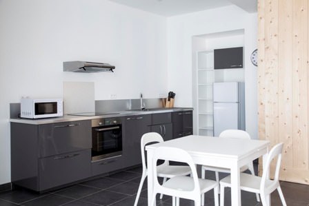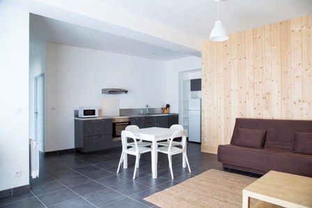A côté des Thermes, de plain pied, il ouvre sur un patio. Cuisine ouverte sur salon/salle à manger, lave-linge, micro-ondes, four, lave-vaisselle, fer à repasser. Canapé convertible en 140 cm. Chambre lit en 140 / lit en 90. 2ème chambre avec 1 lit en 140 Salle d’eau avec douche à l’italienne, WC. Salon de jardin. Non fumeur.