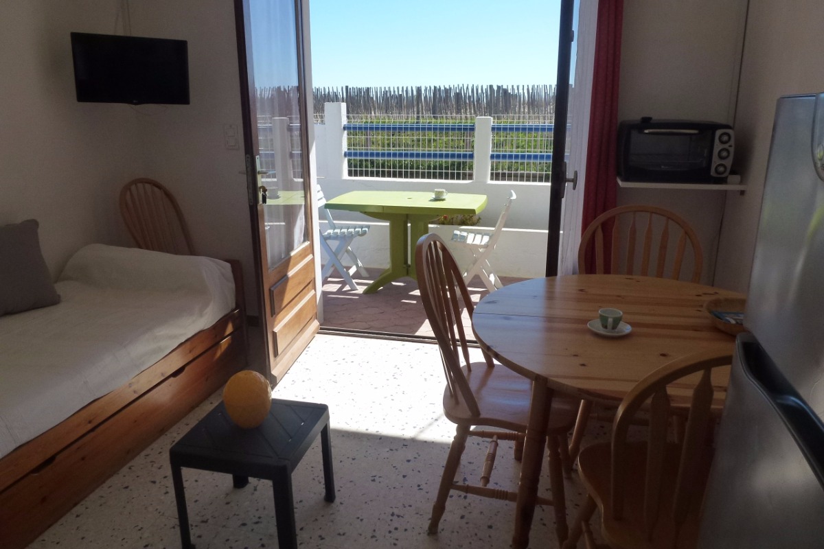 L’appartement « Flots Bleus » classé 2 étoiles avec sa petite terrasse se trouve au rez-de-chaussée d’une maison nouvellement rénovée. A votre arrivée, vous pourrez facilement garer la voiture dans le parking privé situé dans la cour. Accédez directement à la plage par le biais d’un passage juste en face de la maison. Les baignades sont sécurisées. La location équipée et fonctionnelle se compose d’un séjour, cuisine, salle à manger, chambre avec lit 140 et lit gigogne 90 dans séjour, salle d’eau et wc séparé. Profitez du calme de l’environnement résidentiel avec ses petits commerces à moins de 200 mètres derrière la location: pharmacie, épiceries, boulangerie, tabac journaux, restaurants, parc de jeux pour enfants, location vélos, arrêt bus navettes et commodités proches : Casino jeux 1 km, Centre ville rues piétonnes 2,5 km, Hypermarché, galerie marchande 6 km, Béziers ville et gare 15 km, aéroport Béziers-Cap d’Agde 15 km. Nombreuses activités de loisirs.
