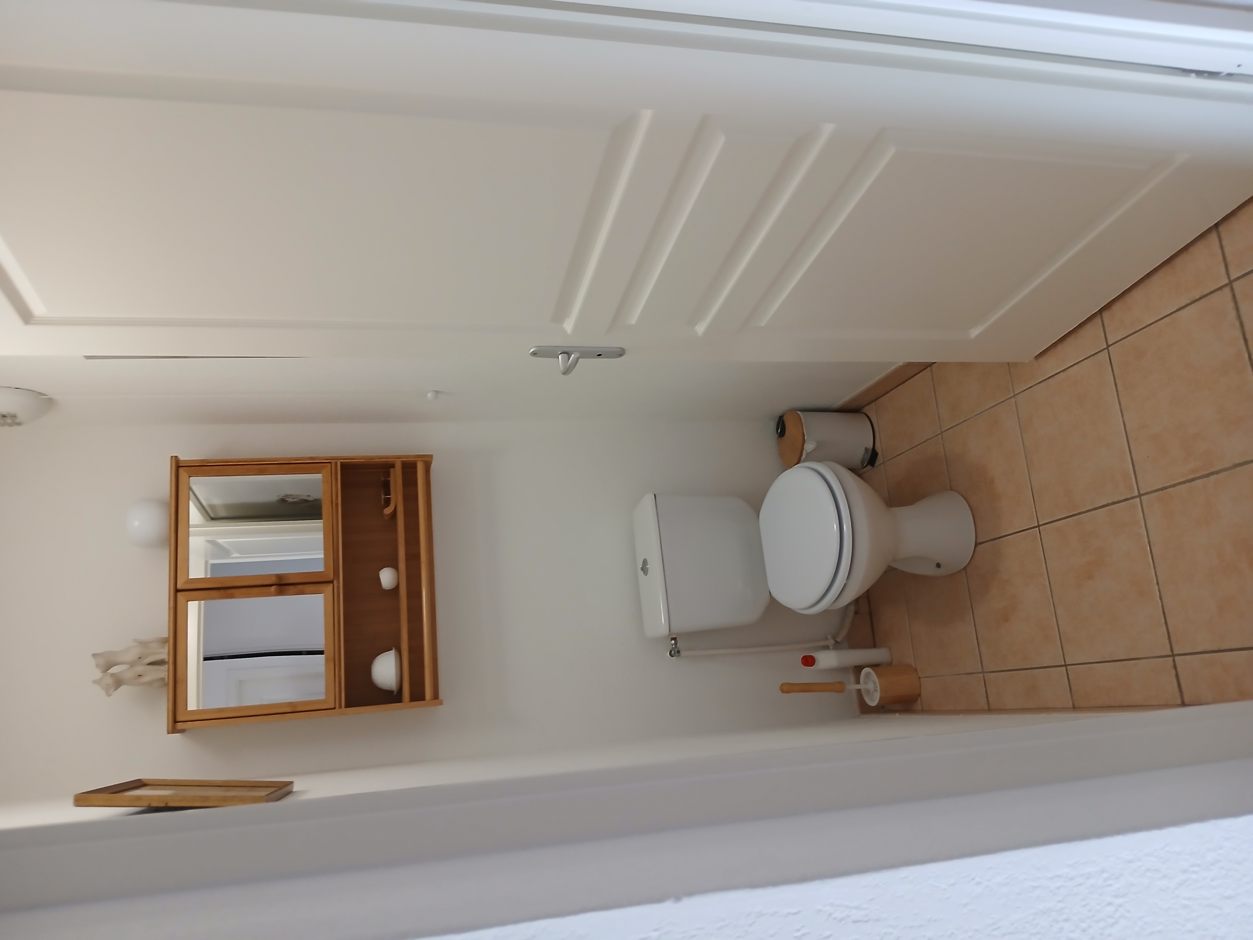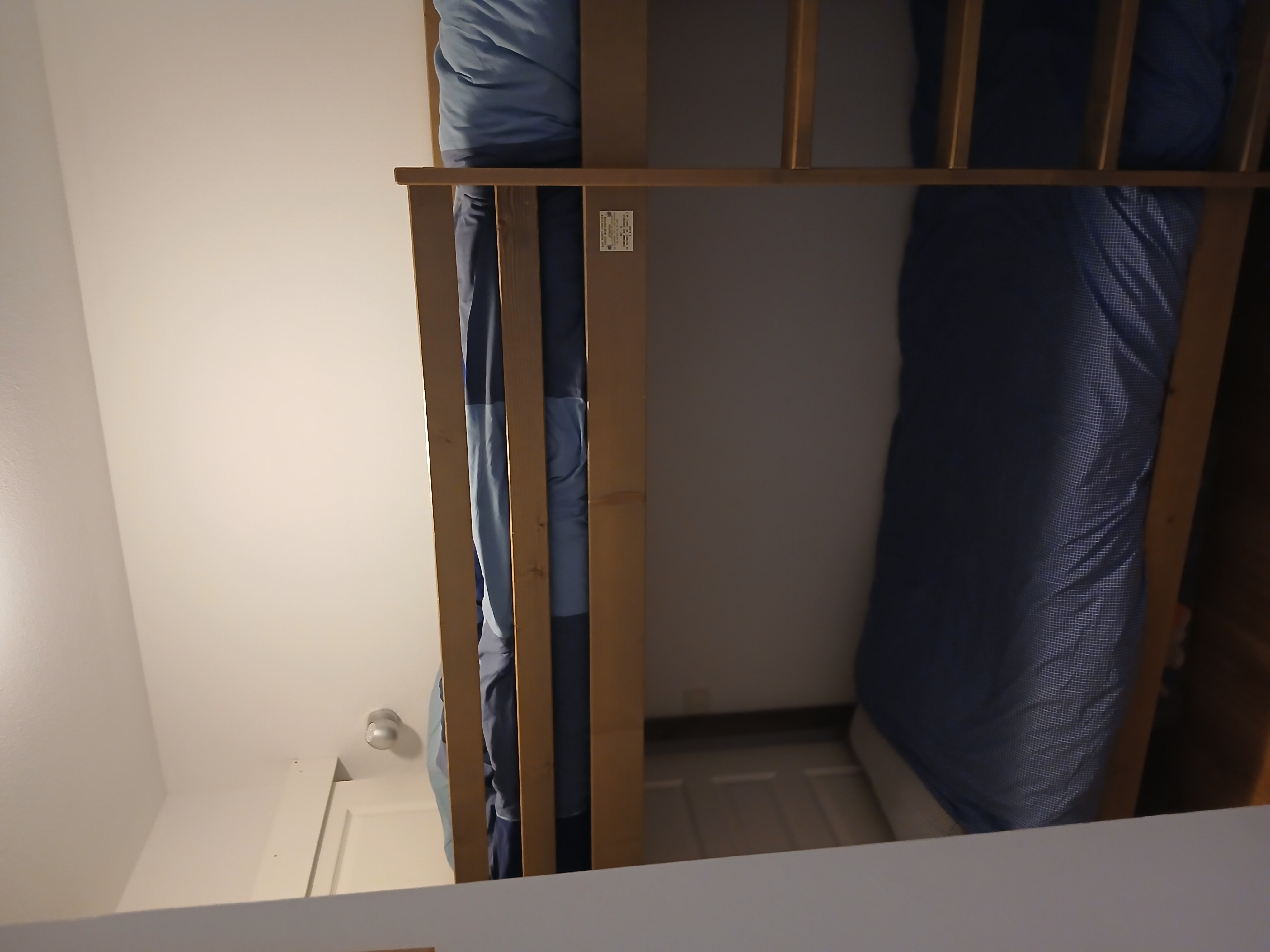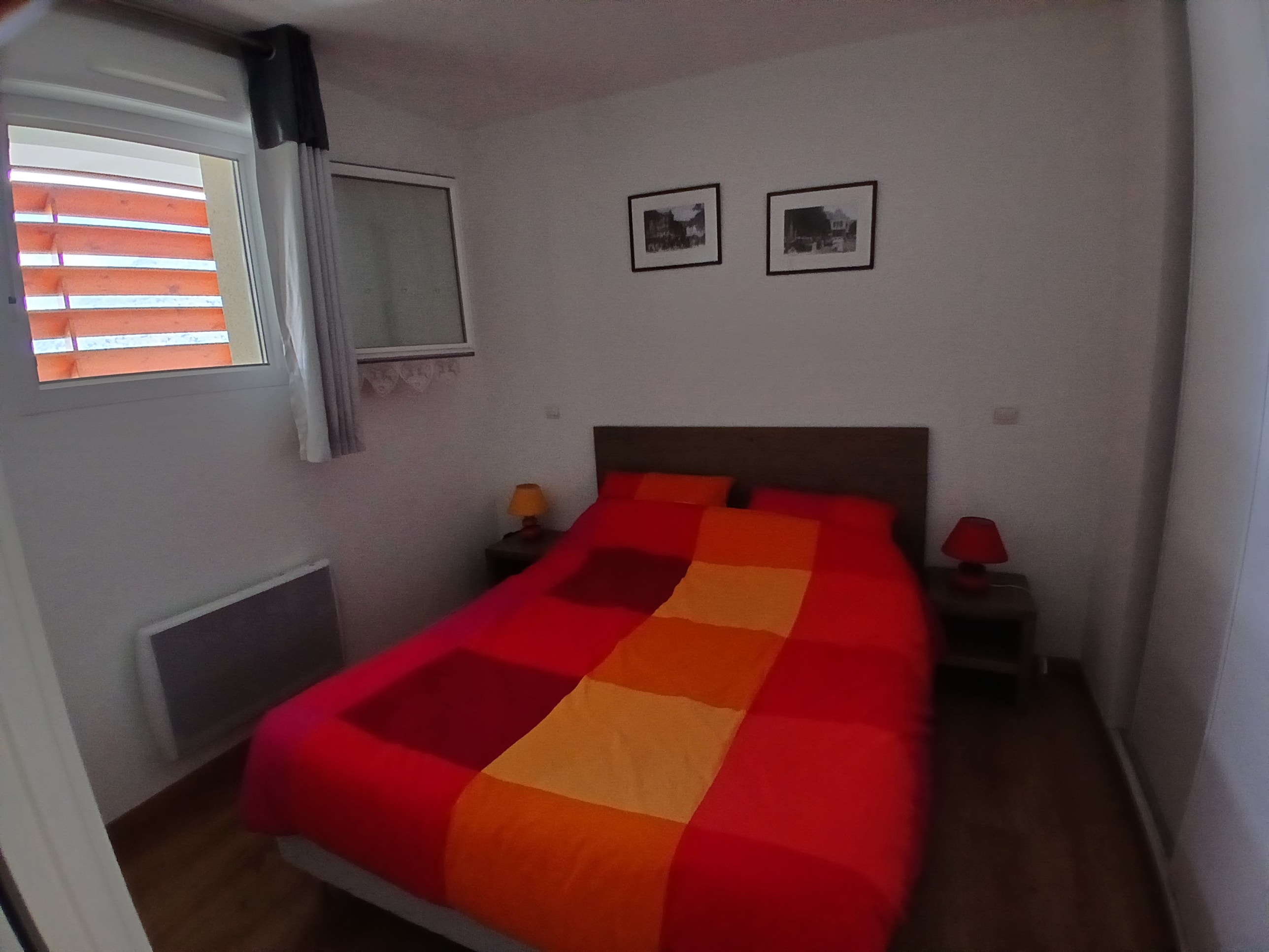 Une chambre parentale, une chambre « enfants » avec lits superposés et sa salle d’eau (évier et douche).