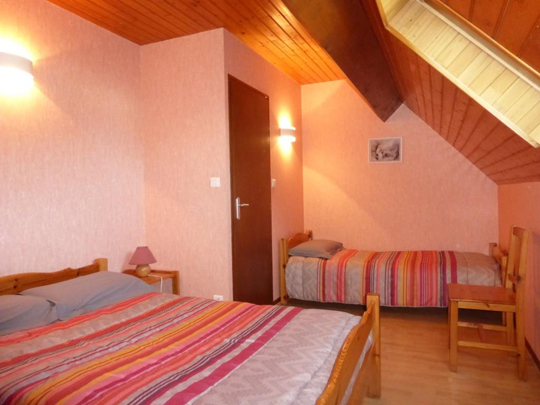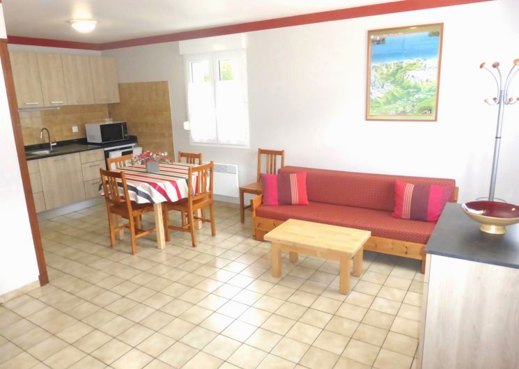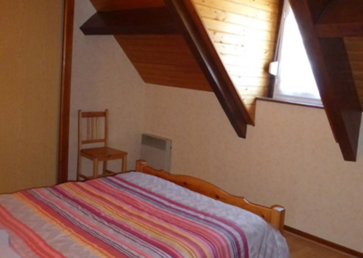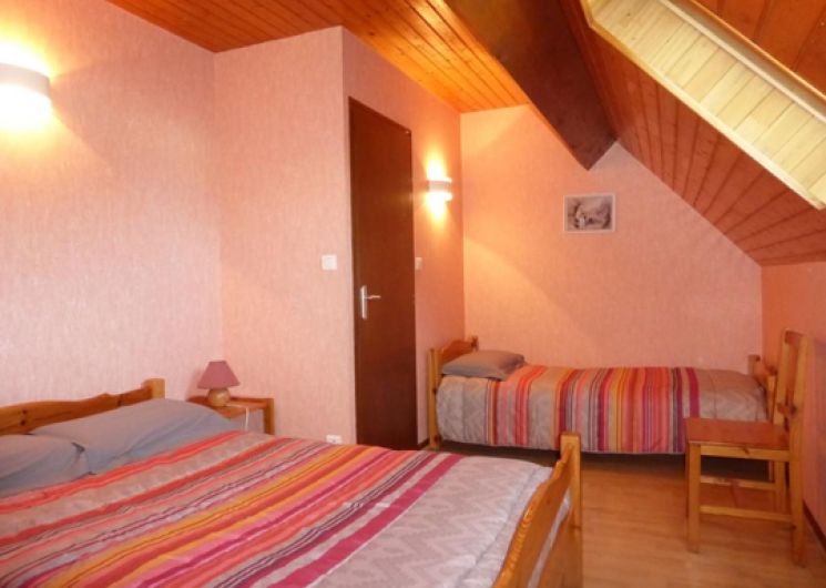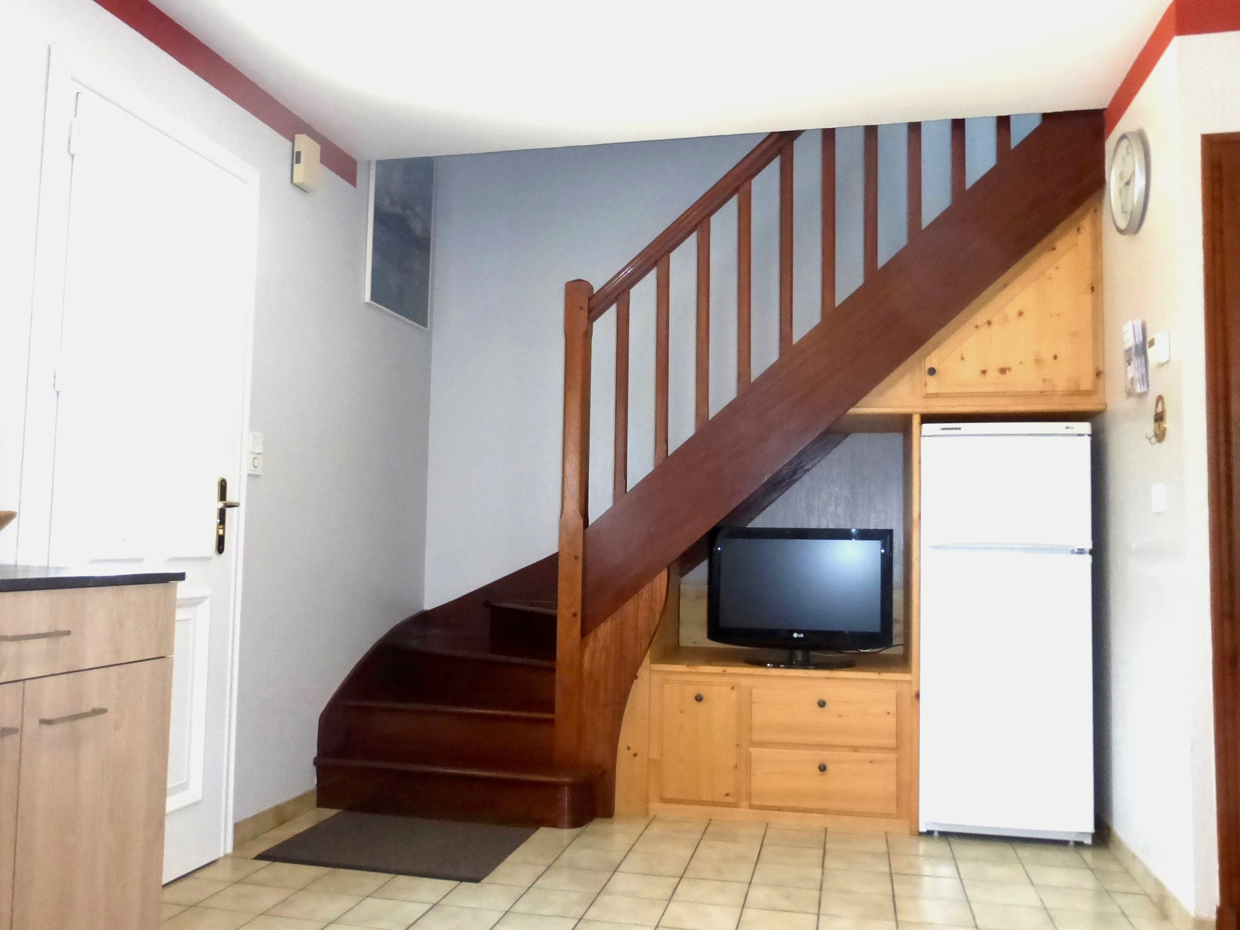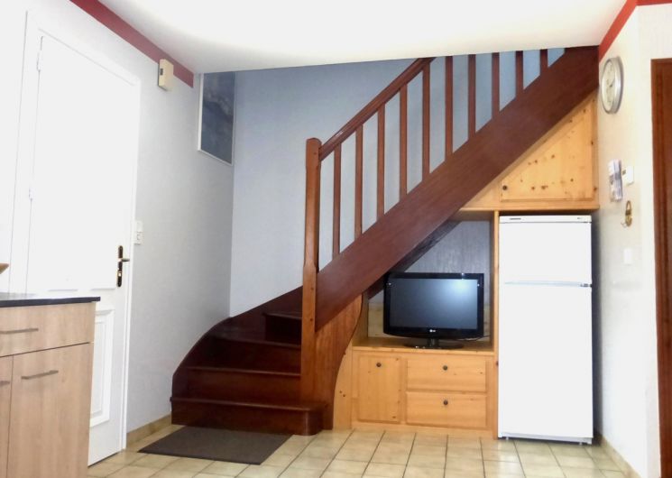 Gîte de 70 m² à étage comprenant : Rez-de-chaussée, une cuisine équipée ouverte sur le séjour, une salle d’eau (douche) et un WC indépendant. À l’étage, 2 chambres (2 lits en 140 et 1 lit en 90). La location bénéficie d’une terrasse clôturée avec salon de jardin, d’un parking privé et d’un garage fermé. Aire de jeux et terrain attenant clos.