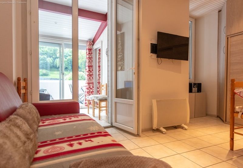 Cet appartement situé en centre ville à deux pas de tous commerces va vous ravir. La pièce à vivre est fonctionnelle et lumineuse avec une cuisine entièrement équipée qui la jouxte. Côté couchages : un canapé convertible en 160 cm de bon confort dans le séjour et une chambre côté montagne au calme avec un lit en 140 cm. Vous disposerez également d’une petite pièce de lecture ou de repos avec une vue sur les montagnes! Draps et linge de toilette compris. Cet appartement confortable n’attend plus que vous. .