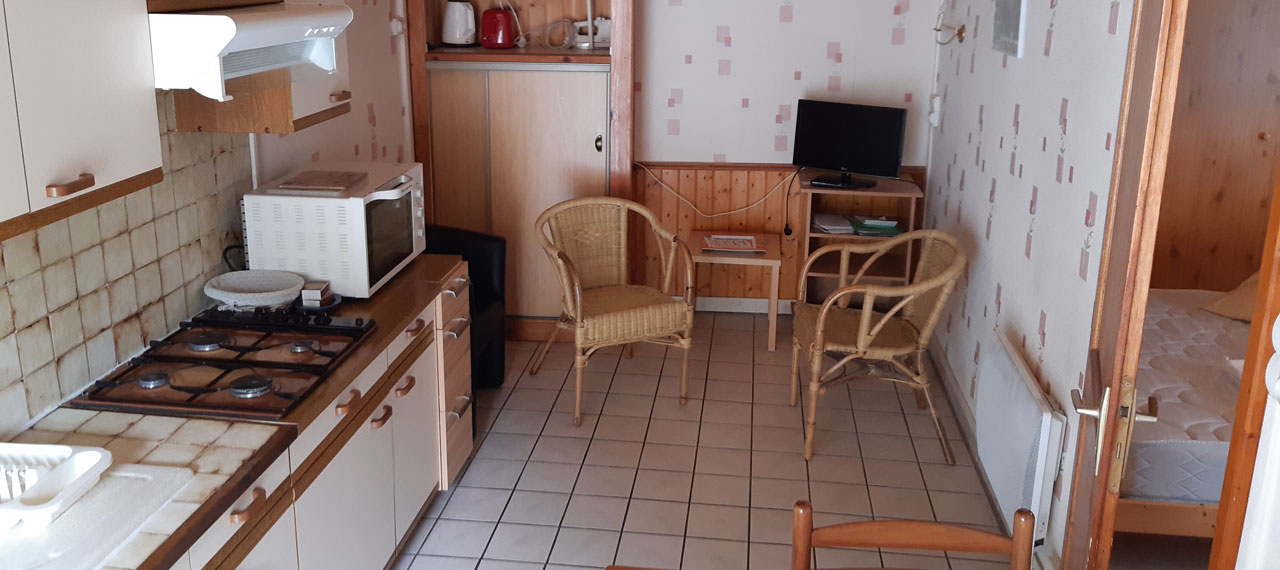 Appartement de 30 m² comprenant : Une cuisine équipée, une chambre (1 lit en 140 et 1 lit en 90), une salle d’eau (douche) avec WC. La location bénéficie d’un balcon avec beau point de vue.