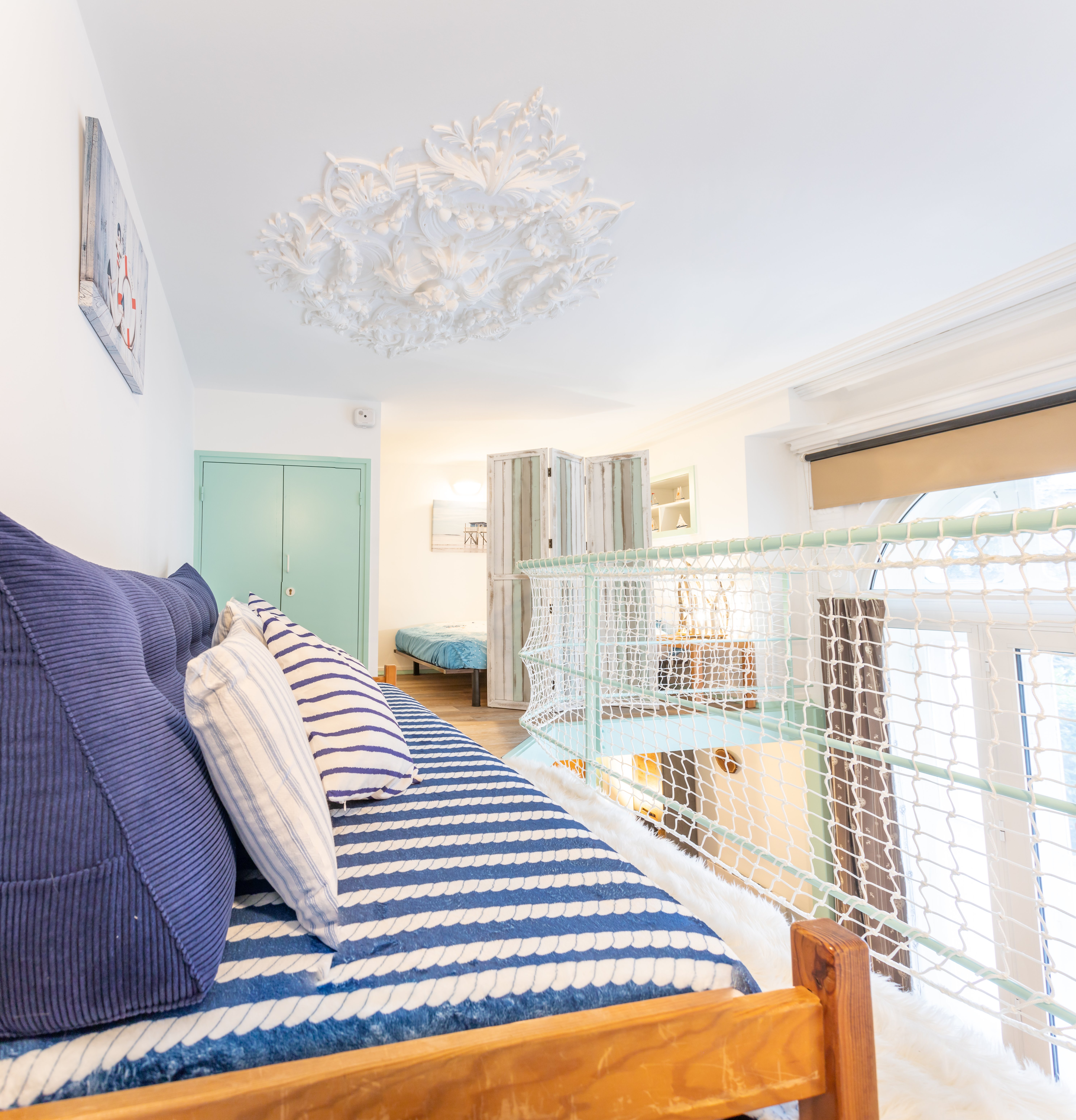 Cet appartement spacieux et lumineux est situé en plein centre ville, à deux pas des Thermes et de la Télécabine du Lys. Vous serez conquis par l’espace, la hauteur sous plafond, la luminosité qu’offre ce bel appartement rénové dans un ancien hôtel de Cauterets. Côté couchage : 1 suite parentale avec un lit king size en 180x200cm, un coin nuit avec deux lits superposés, une mezzanine avec un lit deux places et un couchage dans le salon avec le canapé lit (2 personnes). De nombreux services et équipements agrémentent cet hébergement : parking privé au pied de la résidence, accès direct avec balcon aménagé, espace enfant sur la mezzanine avec jeux de société, salle de bain supplémentaire, bel espace de rangement dans un couloir aménagé, kit d’accueil. .