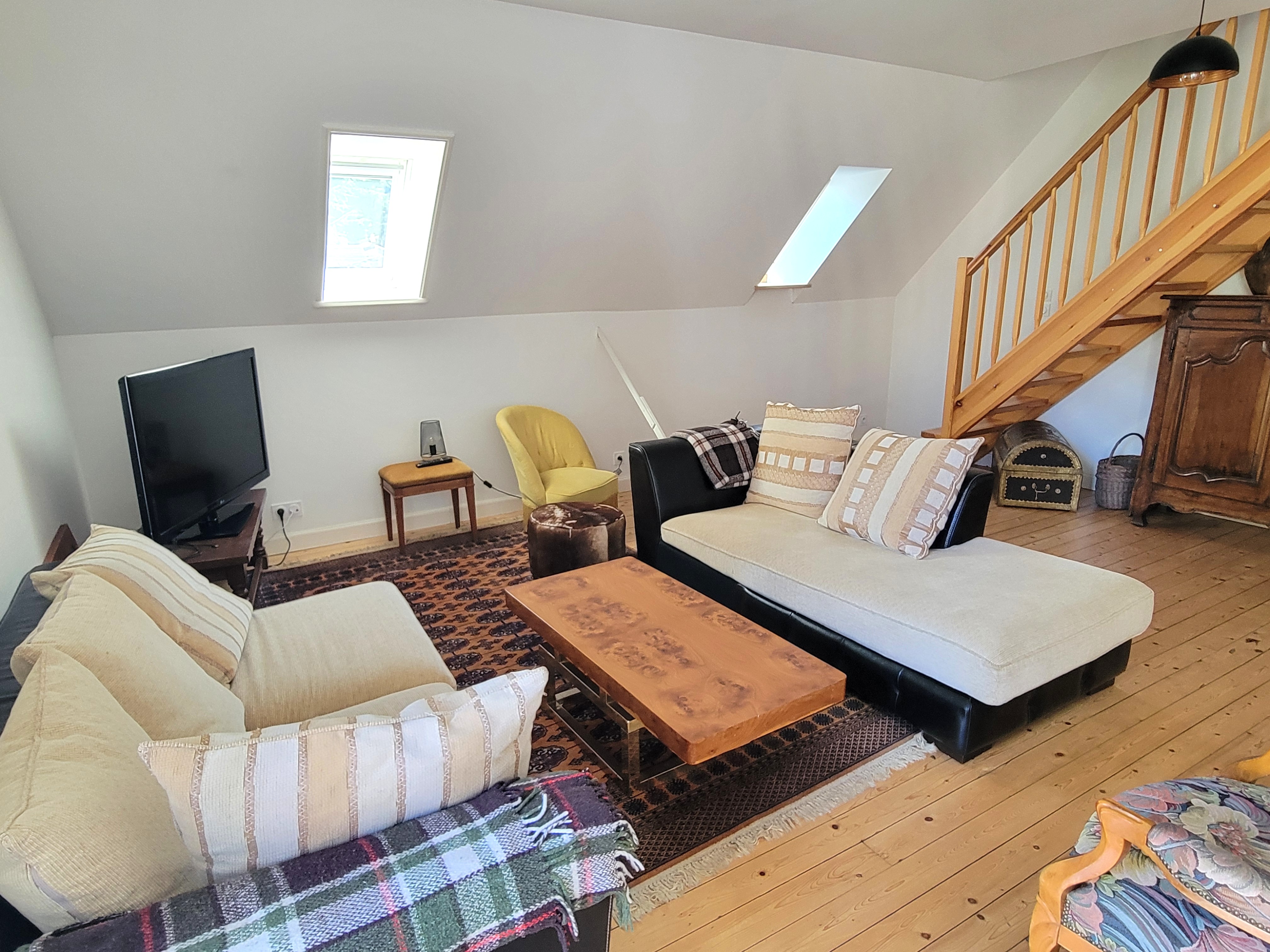 Séjour spacieux avec deux canapés confortables, Tv écran plat .