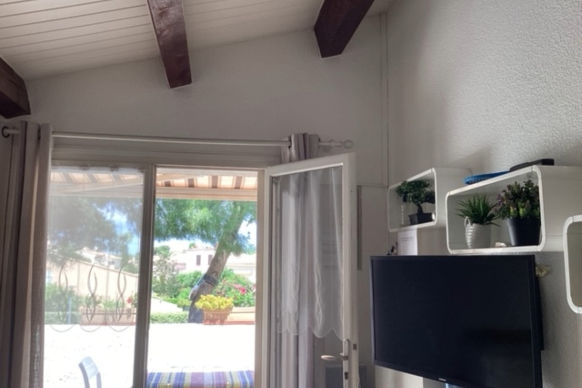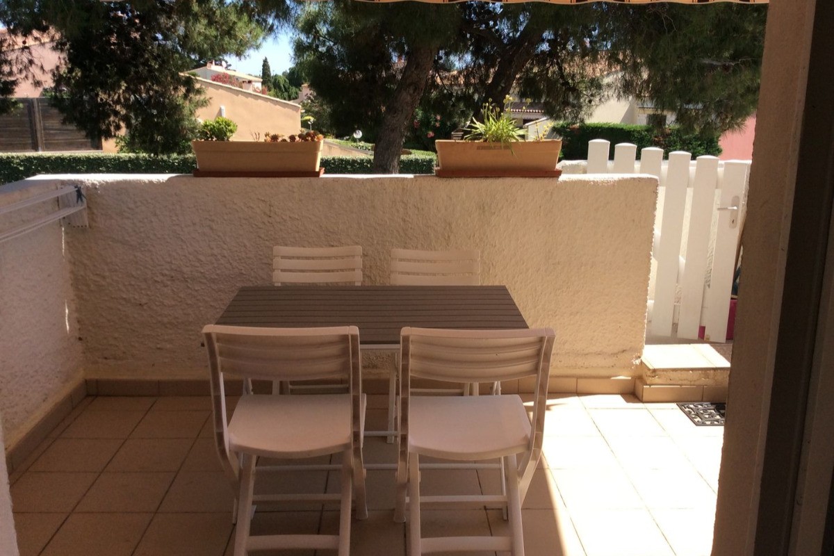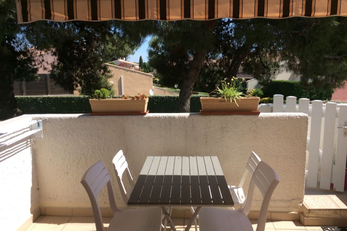RÉF : MAGAR16 Très bel appartement T2 climatisé avec agréable terrasse. Résidence au calme et à l’ombre des pins, à 10 mn à pied de la Rambla du Soleil et du Casino, accès piétonnier direct par portillon. 1er et dernier étage accès par escalier extérieur privé. Composé de : Séjour avec canapé convertible, coin cuisine équipée avec coin repas, salle d’eau, wc indépendants, 1 chambre, agréable terrasse avec store, table et chaises de jardin. ÉQUIPEMENTS : micro-ondes, mini-four, lave-linge, plaque vitrocéramique, réfrigérateur-congélateur, aspirateur… CONFORT : 1 lit en 140. 1 canapé gigogne 2 x 80 Aménagé pour 4 personnes. Parking privé.