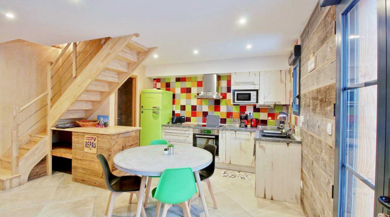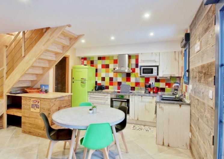 Appartement de 57 m² sur 2 niveaux comprenant : Un séjour/coin-cuisine équipée, accès sur terrasse privative sans vis à vis, 2 chambres (4 lits en 90 modulables en 180), une salle d’eau avec WC et un WC indépendant. La location bénéficie d’un parking commun, d’espaces extérieurs non clos communs. Matériel bébé sur demande.