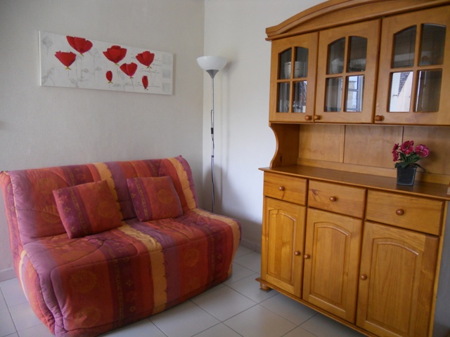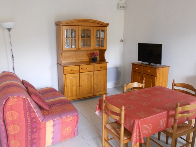 Appartement de 35 m² situé en rez de jardin accessible par quelques marches, composé : d’une pièce à vivre intégrant un coin cuisine et un salon, d’une chambre agencée avec un lit de 140 cm, d’une salle d’eau équipée d’une douche, ainsi que d’un WC indépendant. La location offre également une terrasse couverte, donnant sur un jardin, où vous pourrez profiter d’un salon de jardin pour des moments de détente en plein air.