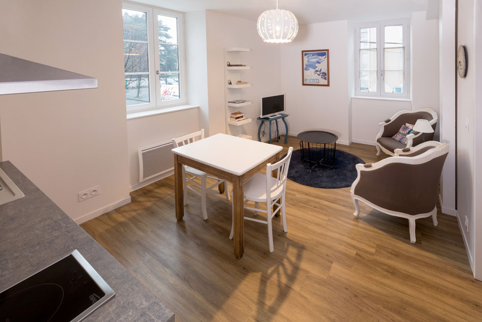 Cet appartement de 25m² récemment aménagé est idéal pour les curistes et vacanciers. Il est proche des commerces et des animations du centre-ville, tout en étant dans un quartier calme, face au parc public arboré des Vignaux, et à 600 m des Thermes. Logement exposé au sud et à l’est, lumineux et à proximité immédiate d’un parking public. La cuisine, ouverte sur le séjour, est équipée d’un four micro-ondes, de plaques à induction, d’un réfrigérateur congélateur. Un lave-linge et un sèche-linge sont en accès libre dans un local commun au RDC. Au séjour, TV à écran plat, livres et jeux de société sont à votre disposition. La chambre comporte 1 lit de 140cm. Salle d’eau avec douche et WC. Accès internet. Possibilité de louer une chambre supplémentaire avec SDB et WC au 3e étage de la résidence .