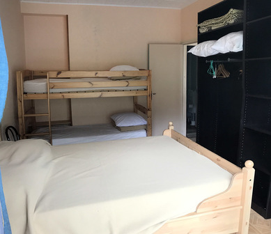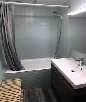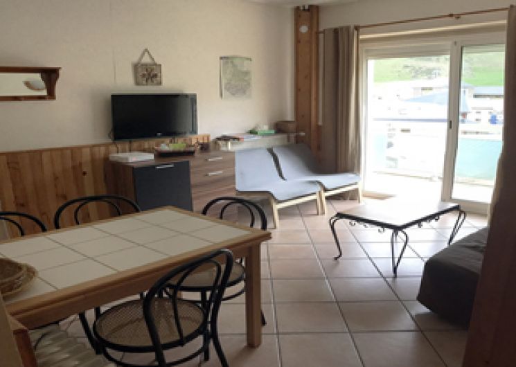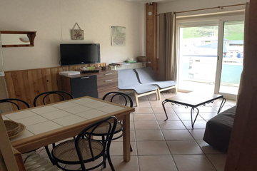Séjour exposé plein sud avec terrasse et salon de jardin. Une chambre avec 1 grand lit de 140 et 2 lits superposés de 90 avec lampes de chevet et prise pour les téléphones portables. Salle de bain rénovée avec WC. Sèche-cheveux pour les dames. Four combi micro-onde, cafetière, bouilloire, grille-pain, TV + Internet, lecteur Blu-ray, jeux. Local à ski l’hiver.
