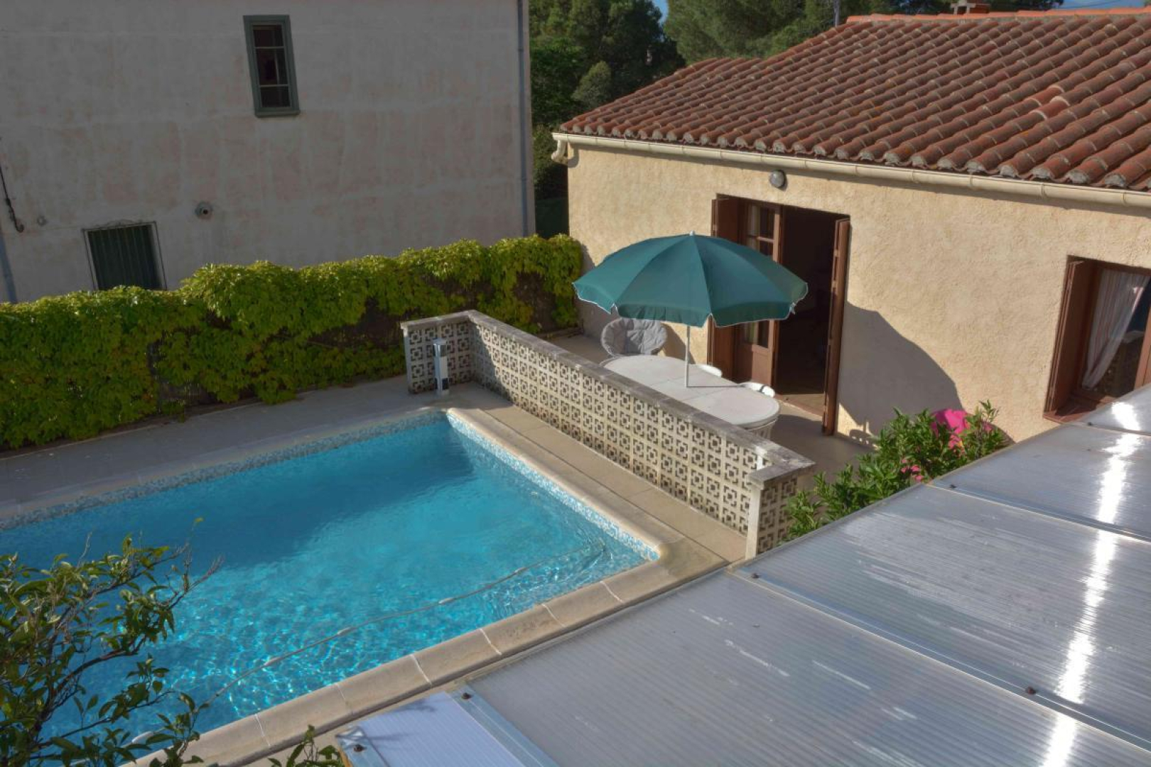 Accès : A9 sortie Perpignan Sud, prendre direction Thuir puis Trouillas. A Trouillas, 1ère maison à droite après la cave coopérative. Noter sur le GPS rue des vignes (arrière de la propriété et accès gites). Aller tout au fond de la rue des vignes, la propriété fait coin avec 2 impasses.