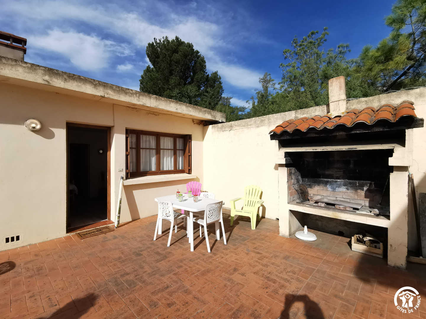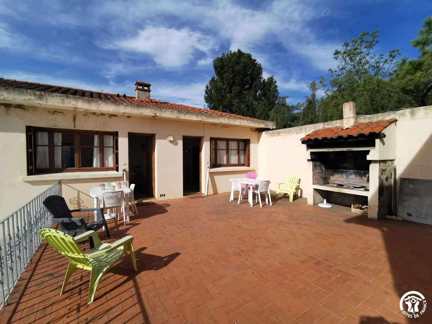 Bienvenue à Trouillas, village niché entre les vignes et les collines, à quelques minutes de Perpignan et des plages d’Argelès sur Mer ou de Canet en Roussillon. Vous serez à deux pas des domaines viticoles à découvrir absolument. Empruntez les sentiers de randonnées dans les Aspres ou les Albères avec des paysages exceptionnels. A proximité de la rue du village, cette maison mitoyenne à la résidence du propriétaire, comprenant deux gites ruraux identiques se compose : Premier étage : – Cuisine – Séjour avec canapé-lit – Chambre : 1 lit 140×190 – Salle d’eau – WC indépendant Il y a une terrasse avec barbecue commun. Le jardin est clos et arboré, accès à la piscine privée du propriétaire.