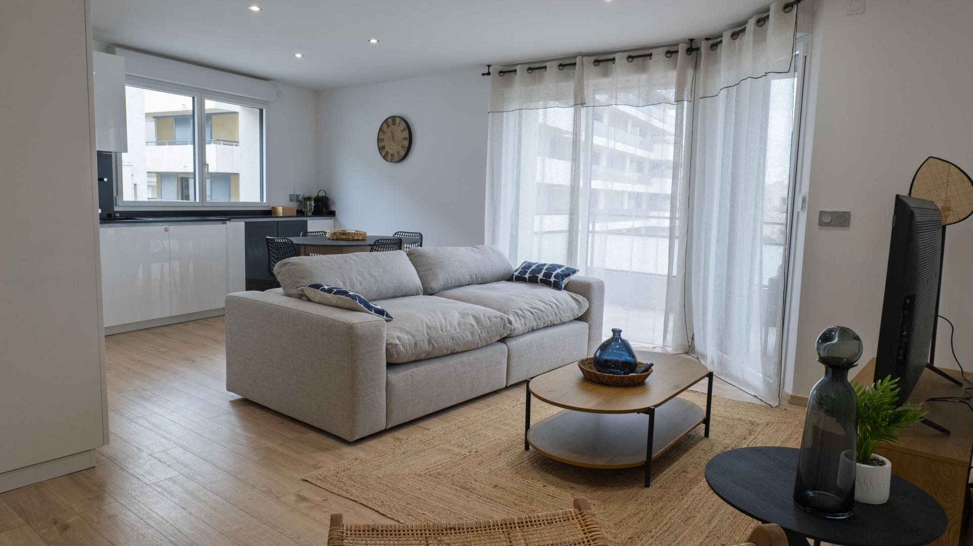 A 100 m des plages, au 2ème étage d’un immeuble sécurisé, composé de 3 appartements, avec accès direct par ascenseur, vous apprécierez le confort de ce gîte moderne, lumineux, climatisé, spacieux et tout confort avec sa terrasse de 14 m². Canet-Plage est le point de départ idéal: balades dans les ruelles de Collioure, dégustations dans les vignobles, visites culturelles à Perpignan ou randonnées dans les Albères. Les sportifs apprécieront les activités nautiques, les pistes cyclables, ou encore les excursions nature. Cuisine équipée, espace repas et séjour donnant sur la terrasse Une chambre : 1 lit 140 x 190 Une chambre : 1 lit 140 x 190 Salle d’eau communicante depuis ces 2 chambres Wc Une suite parentale : 1 lit 160 x 200, salle d’eau attenante (wc) Parking communaux.