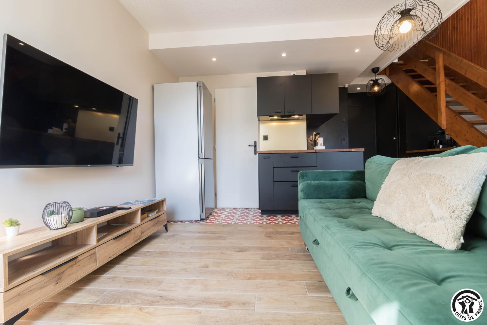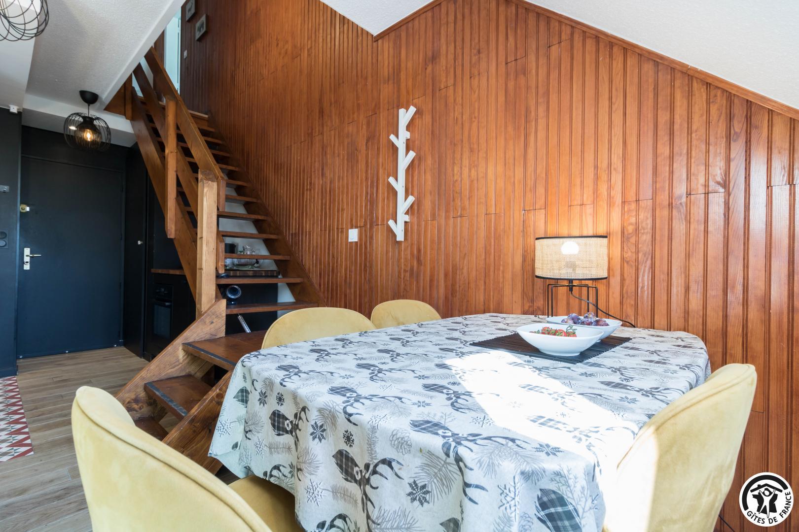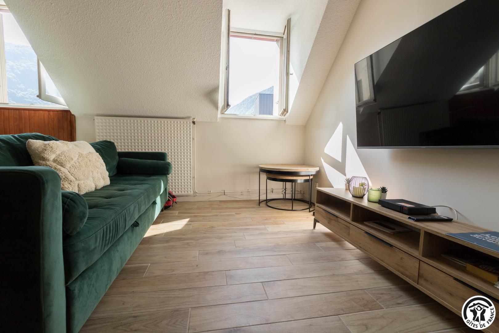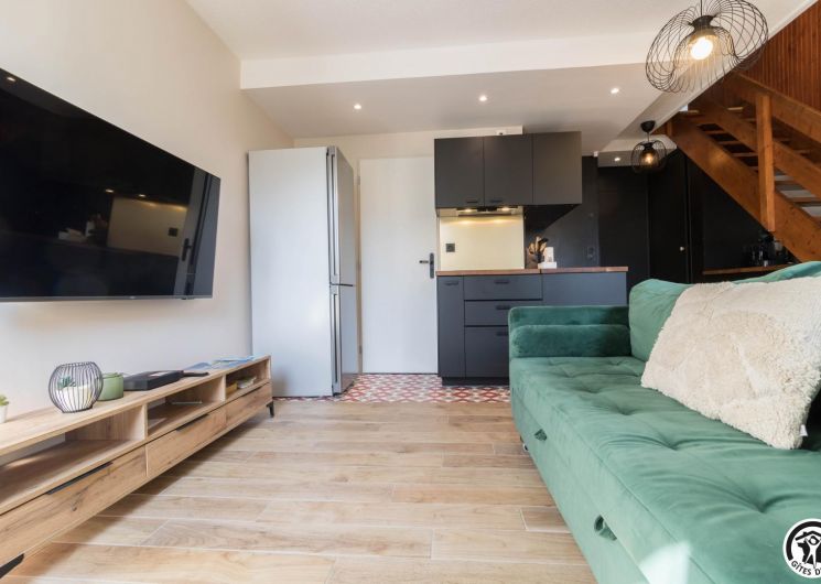 Découvrez la capitale des Pyrénées Centrales, grâce à ce meublés de tourisme tout confort. Ce petit bijoux pyrénéen possède tout les atouts pour vous faire passer un séjour inoubliable, et il vous propose une décoration sobre et raffinée. En effet, vous aurez accès à une place de parking privative souterraine (au -1, accessible aux petites voitures) et à côté de votre place, à un local à ski. L’appartement se trouve au quatrième étage avec ascenseur : entrée, séjour (cuisine intégrée, espace repas et coin salon), salle d’eau/WC. Au premier étage, vous trouverez 2 chambres (chambre parentale : 6.27 loi Carrez et 12.04 au sol, chambre des enfants fait 9.97 loi Carrez et 16.76 au sol) avec chacune 2 lits en 90*200cm (les lits de la petite chambre sont jumelables) ainsi qu’un WC (lave-linge).