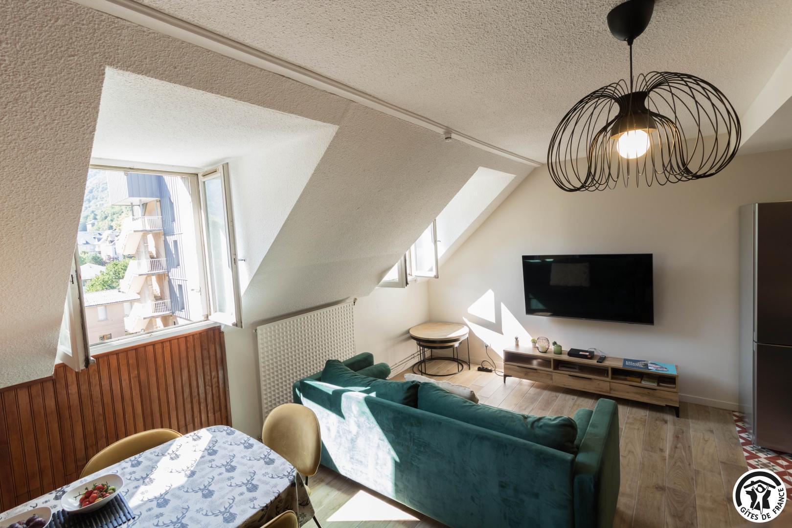 Charmant appartement lumineux et très bien équipé, sur les allées des Bains menant aux nouvelles thermes de Bagnères-de-Luchon, et à 200 mètres du nouveau téléphérique où vous serez sur les pistes de ski et de VTT de Luchon-Superbagnères en 8mn !