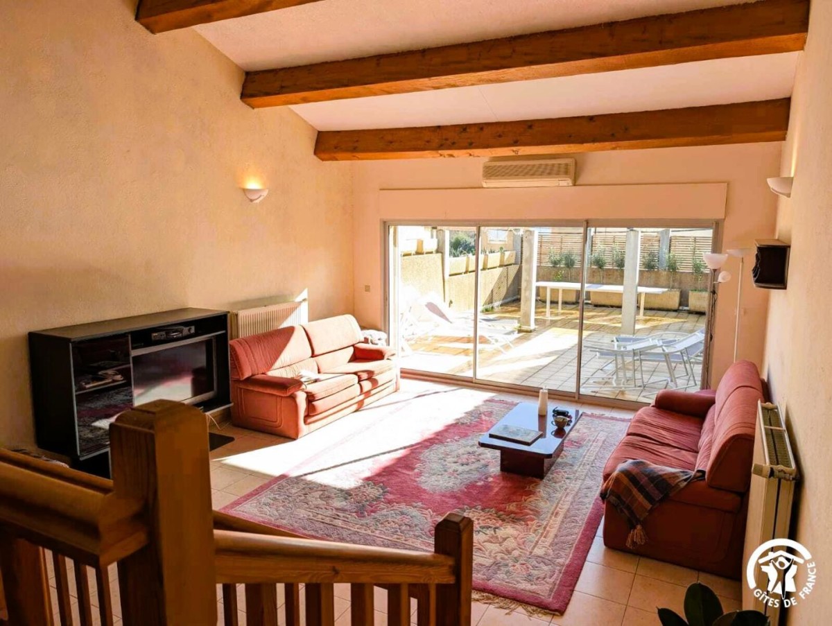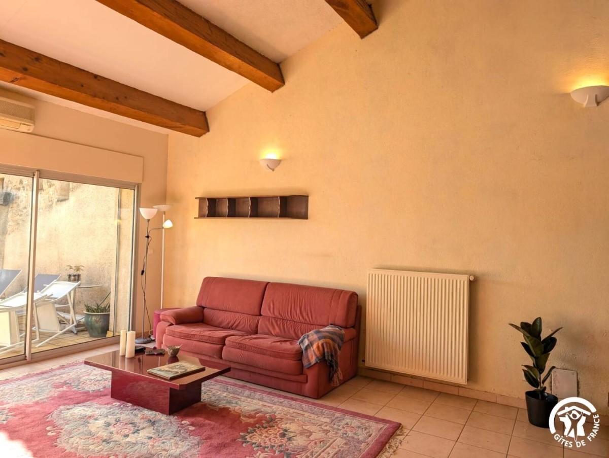 À Pézenas, ville d’art et d’histoire connue pour son centre ancien animé, ses ateliers d’artisans et l’héritage de Molière, vous profitez d’un point de chute idéal pour découvrir le cœur touristique de l’Hérault. Les balades dans les ruelles pavées, les spectacles estivaux et la proximité de l’étang de Thau, d’Agde et de Marseillan rythmeront agréablement votre séjour. Cette ancienne église réaménagée en gîte, accueille confortablement les familles, dans un environnement urbain mais calme. Au rez-de-chaussée, la cuisine séparée et entièrement équipée (lave-vaisselle, four, four micro-ondes, cafetière Senseo…) permet de préparer vos repas en toute autonomie. Vous y trouverez également une salle de bain avec baignoire et vasque, ainsi qu’un WC indépendant. Une première chambre avec un lit en 140*190 se situe à ce niveau. L’étage s’organise autour d’un salon lumineux climatisé agrémenté d’une large baie vitrée donnant accès à une grande terrasse ombragée, équipée de bains de soleil et d’un espace repas. idéale pour vos moments de détente. Une petite mezzanine peut servir de bureau et dispose de jeux de société à votre disposition. Deux autres chambres sont aménagées. Détail des chambres : • Chambre 1 (rez-de-chaussée) : lit 140×190 – 17 m² • Chambre 2 (étage) : lit 140×190 – 10 m² • Chambre 3 (étage) : lit 140×190 + lit superposé 90×190 (pour un enfant) – 9,55 m² Le gîte est réservable pour 6 personnes avec possibilité d’ajouter un enfant de plus sur demande auprès du service réservation. Une salle d’eau avec douche et vasque ainsi qu’un second WC complètent cet étage. Possibilité de garage sécurisé en supplément 45€/Semaine à régler sur place. Un parking public à 200m, gratuit hors saison et payant du 1er juin au 30 septembre (3.50€/demi-journée et 5€ la journée). Les points forts : un grand salon climatisé, une terrasse agréable, un emplacement idéal pour découvrir Pézenas et les sites majeurs du littoral.