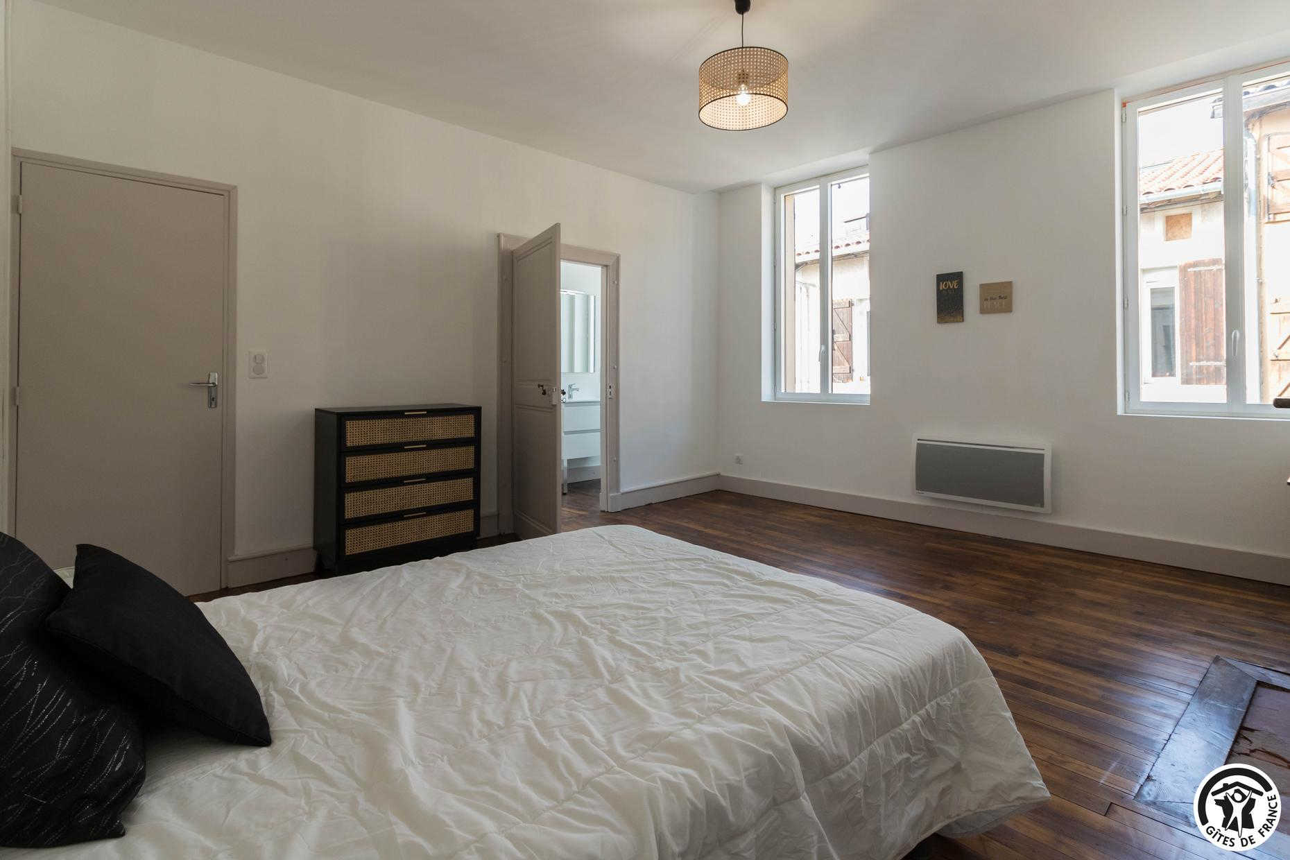 Jardin privatif clos avec terrasse couverte. Télétravail possible dans les chambres. Place de stationnement public dans la rue ou sur la place derrière le gîte.