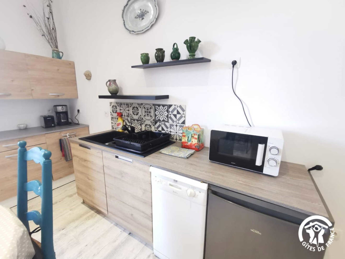 Le gîte, qui possède le Wifi, s’ouvre sur une belle pièce de vie composée d’un espace cuisine/salle à manger et d’un espace salon. Dans ce dernier, vous retrouverez un canapé avec sa table basse ainsi qu’une télévision, le tout avec des jeux de société à disposition. La cuisine est une cuisine bien équipée avec four, micro-ondes, réfrigérateur, lave-vaisselle, machine à café, bouilloire et tout le nécessaire de cuisine pour passer un agréable séjour. Derrière le séjour, vous pourrez vous détendre dans une belle chambre pour deux personnes avec un lit double 160×200 cm qu’il est possible de séparer en deux lits simples 80×200 cm, leurs tables de chevet avec lampes ainsi qu’une grande armoire de rangement. Le gîte possède également une salle d’eau avec une douche, un WC, une vasque avec miroir et une machine à laver. A l’extérieur, vous pourrez profiter d’une jolie terrasse avec salon de jardin pour deux personnes et barbecue, le tout dans un écrin de verdure. Attractions touristiques : Le Caylar, petit village pittoresque niché dans les montagnes de l’Hérault, offre un cadre paisible pour une escapade pour deux. Niché entre les monts de la Séranne et le plateau du Larzac, il est entouré d’une nature préservée et offre de nombreuses possibilités d’activités en plein air, notamment des randonnées. Si l’aventure vous tente, suivez le circuit du GRP Tour du Larzac Méridional, qui vous fera découvrir les magnifiques paysages de plateaux et de montagnes du Larzac. Également, à une trentaine de kilomètres par exemple, explorez le magnifique Cirque de Navacelles, classé au patrimoine mondial de l’UNESCO. Cette formation géologique spectaculaire offre des panoramas à couper le souffle, parfait pour randonner en profitant du grand air et de la nature environnante.
