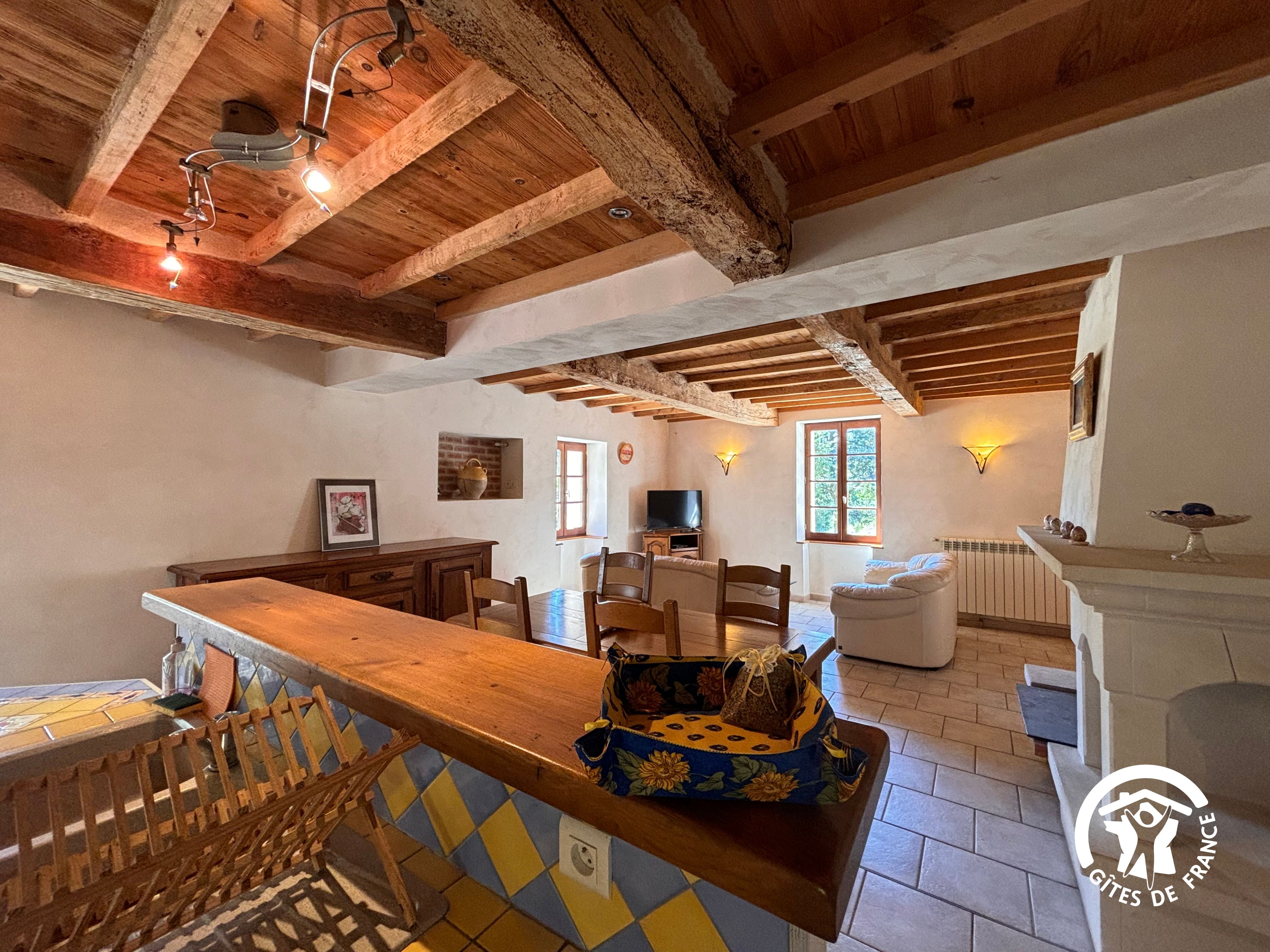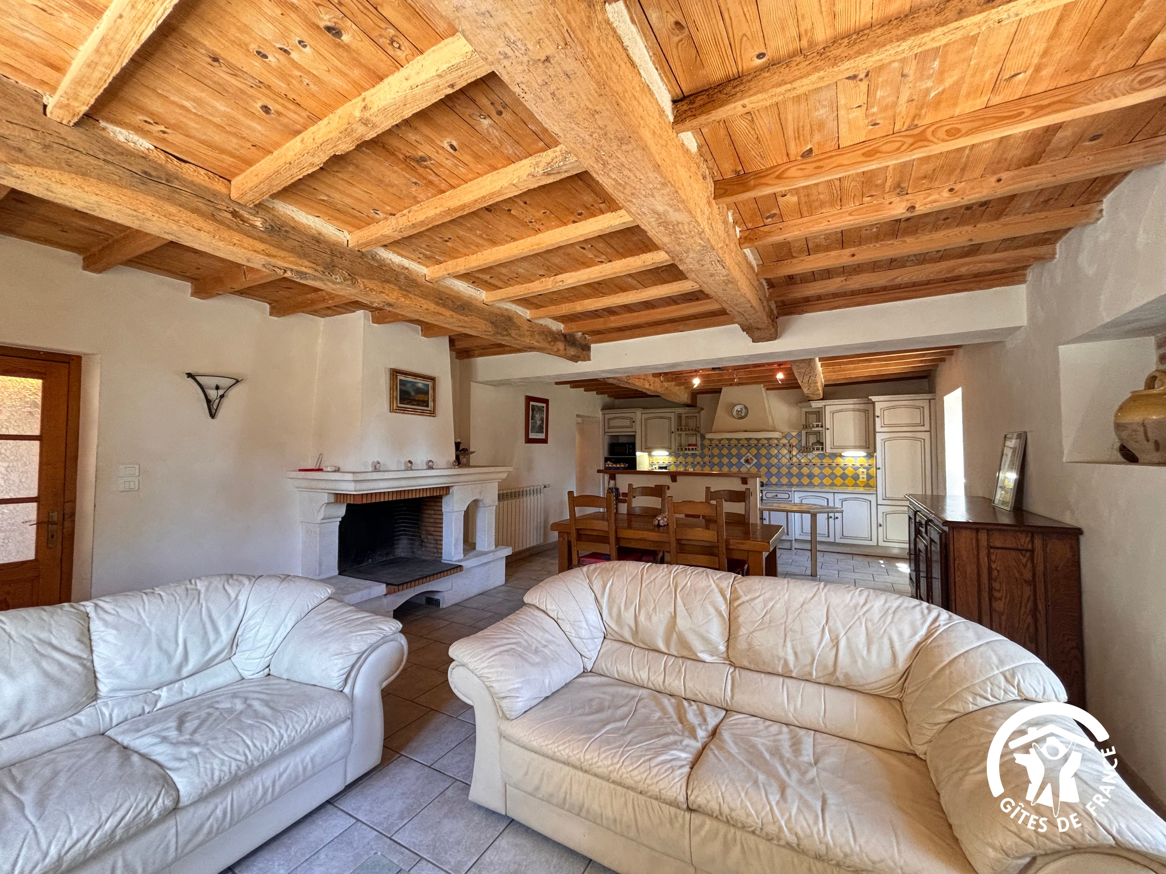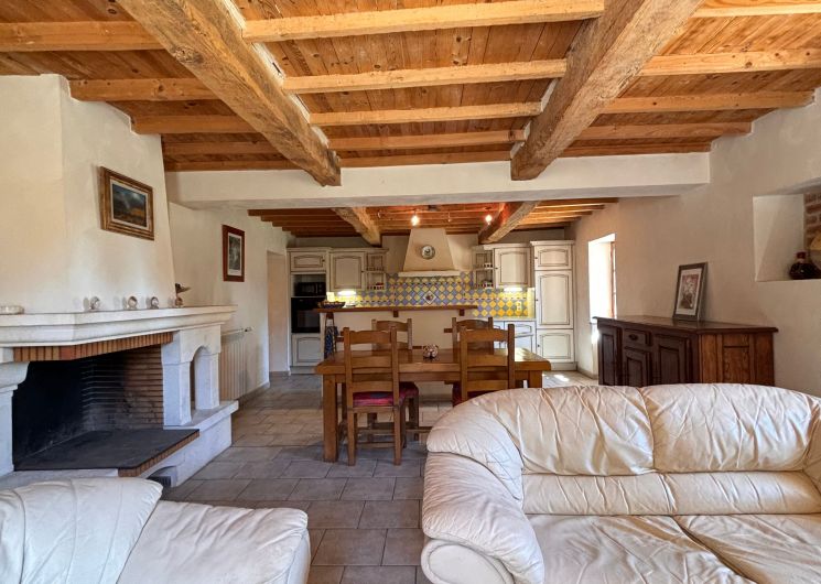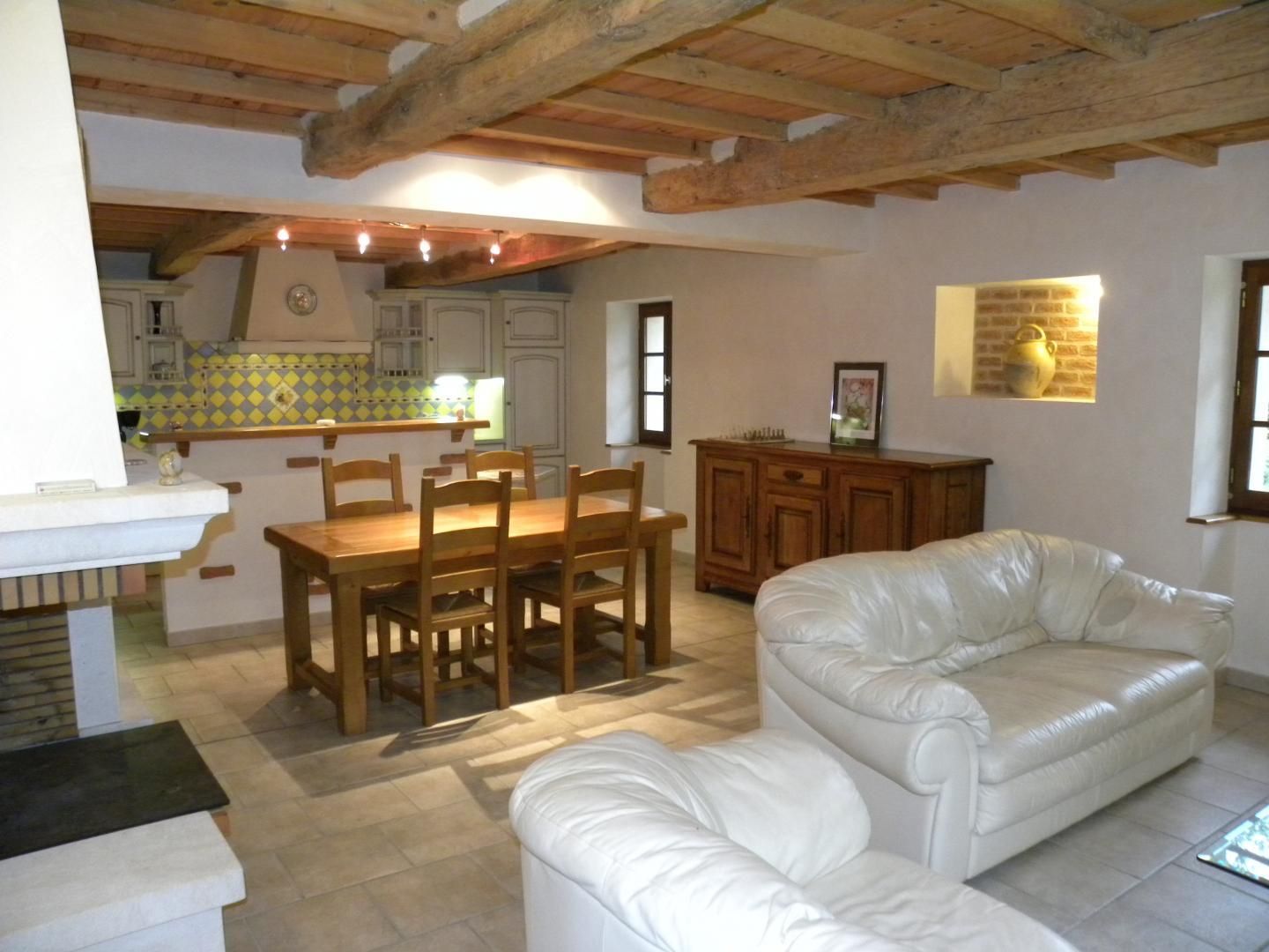 Entrée, salon, cuisine ouverte entièrement équipée, 2 chambres (2 lits 140, 1 lit 90), salle de bain (baignoire et douche), wc indépendant, chauffage au fioul.