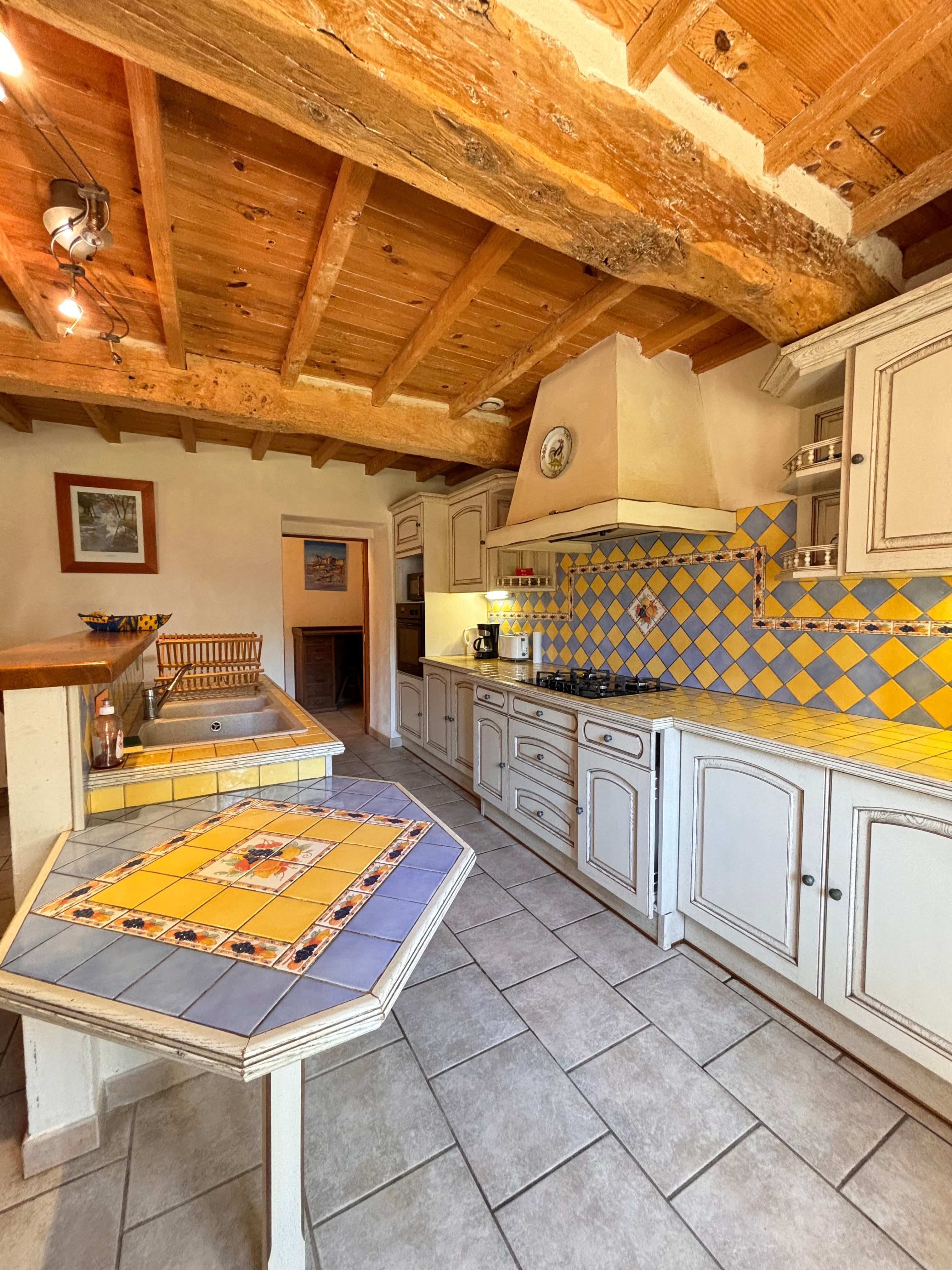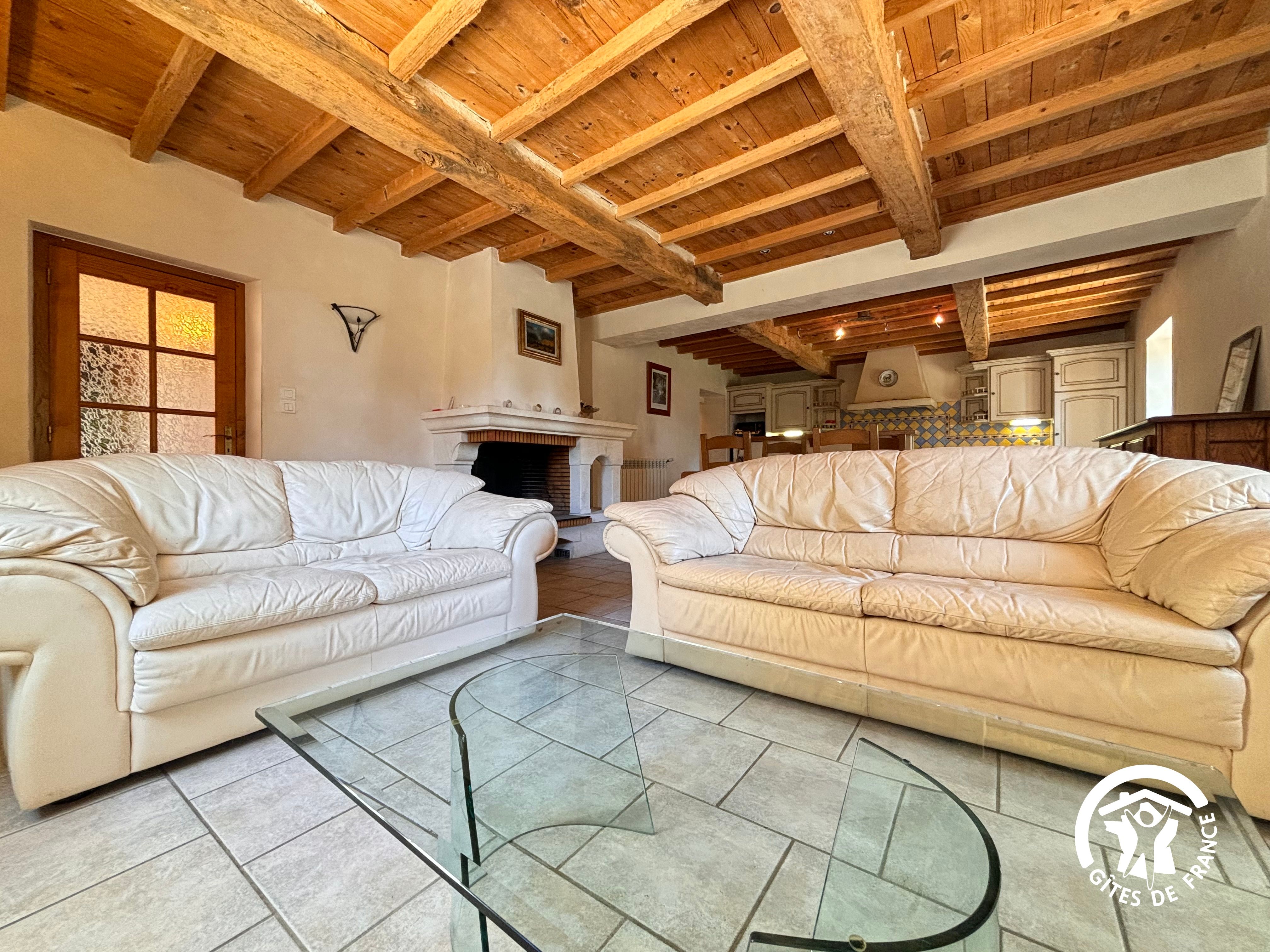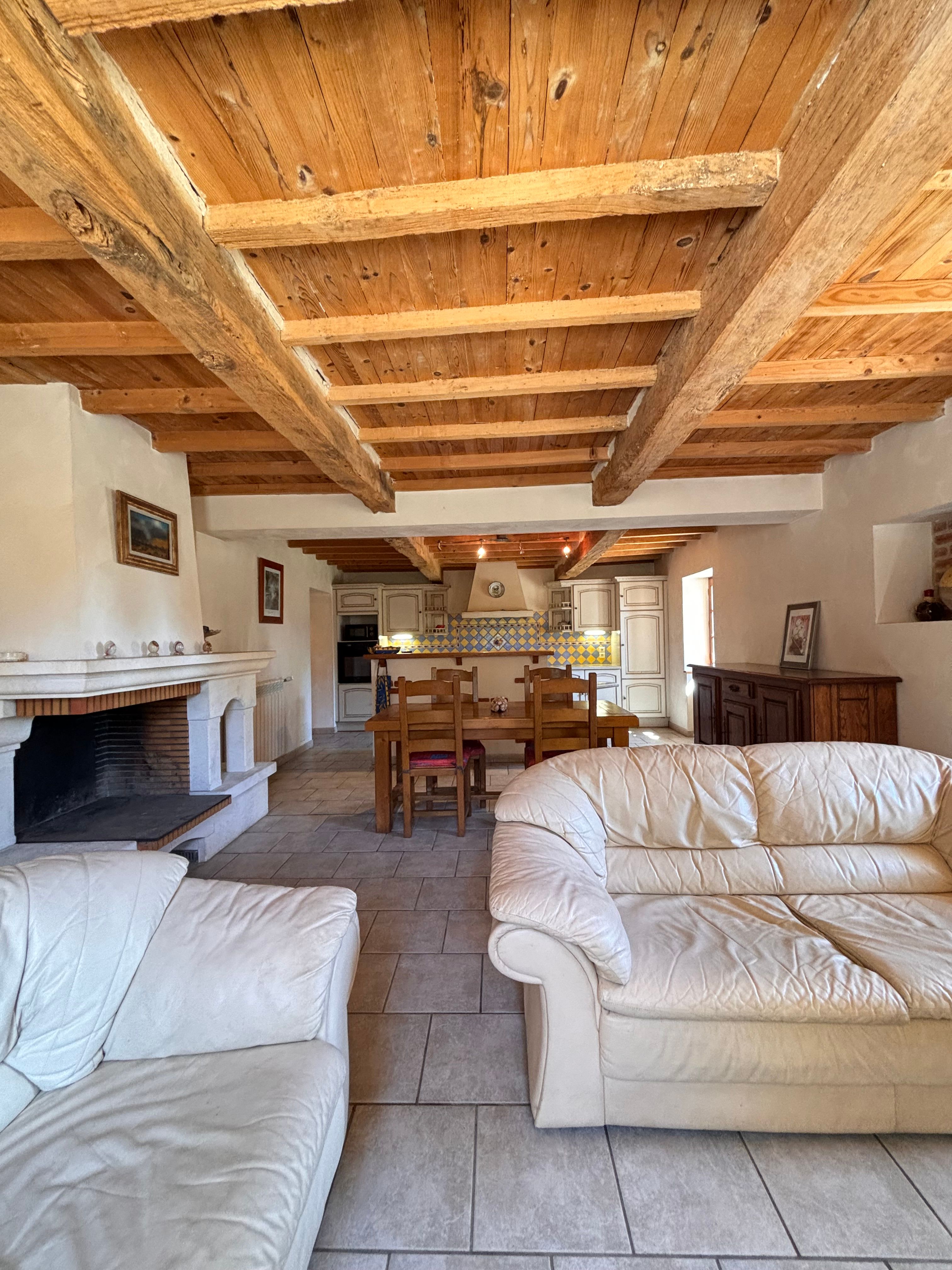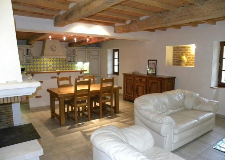 Entrée, salon, cuisine ouverte entièrement équipée, 2 chambres (2 lits 140, 1 lit 90), salle de bain (baignoire et douche), wc indépendant, chauffage au fioul.