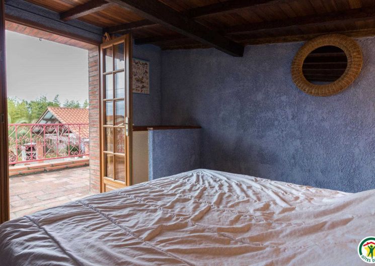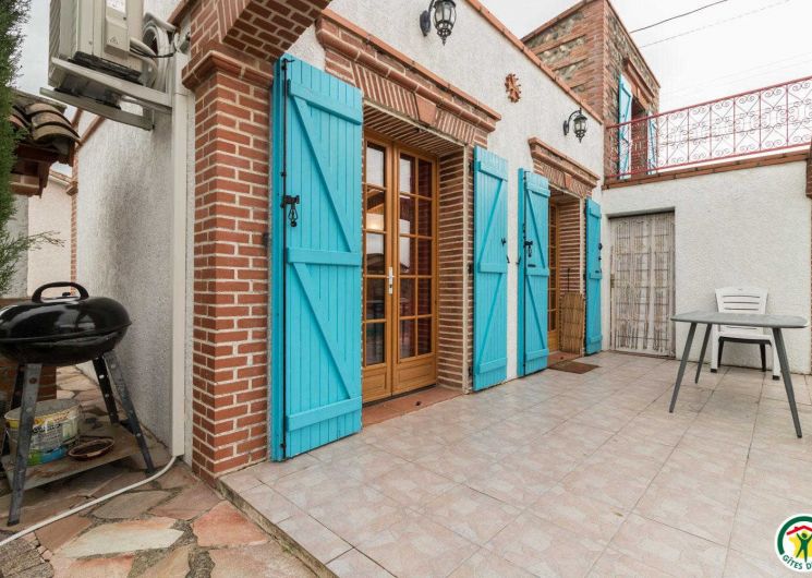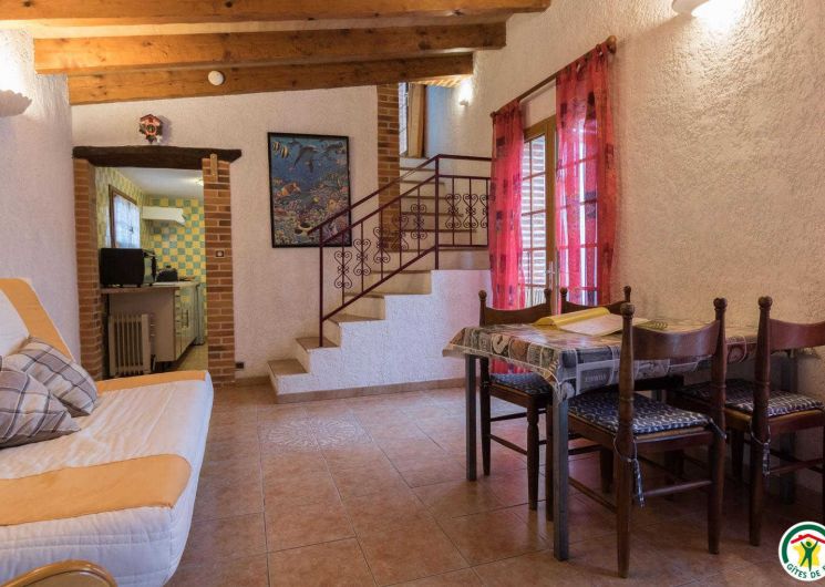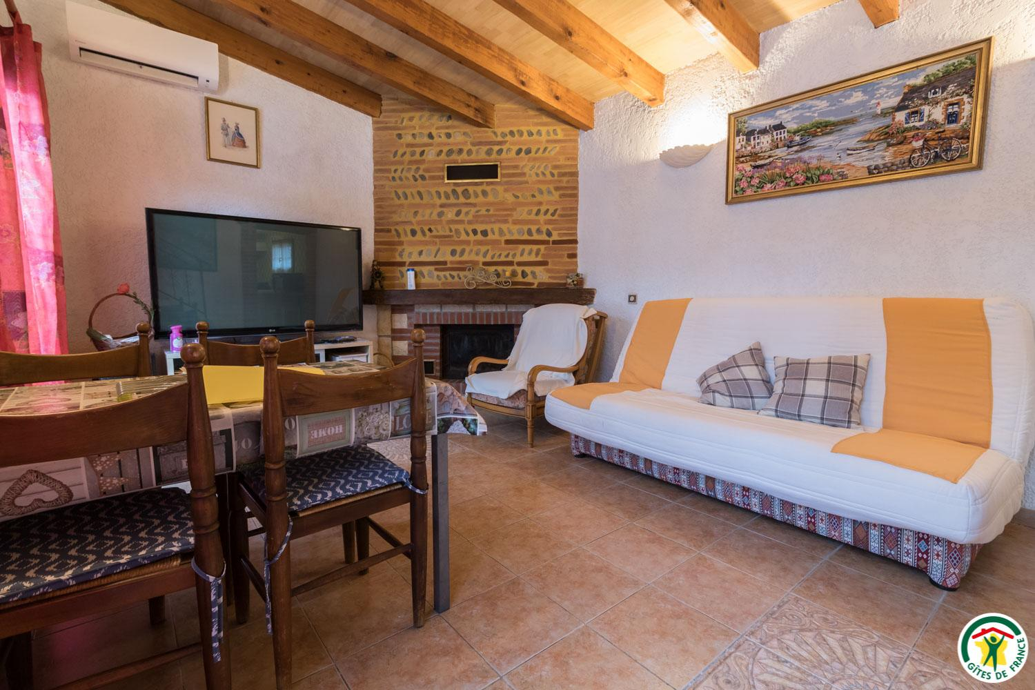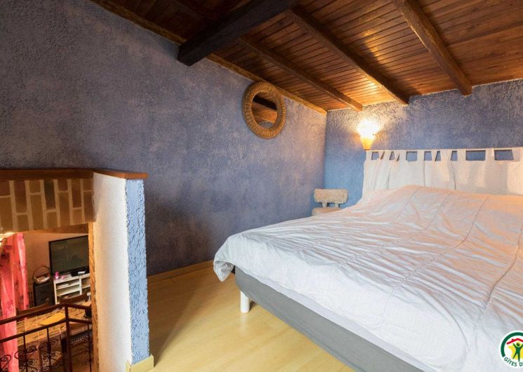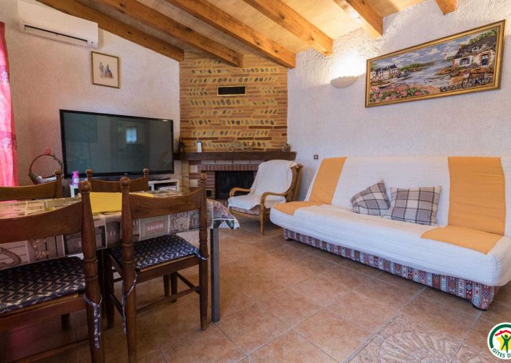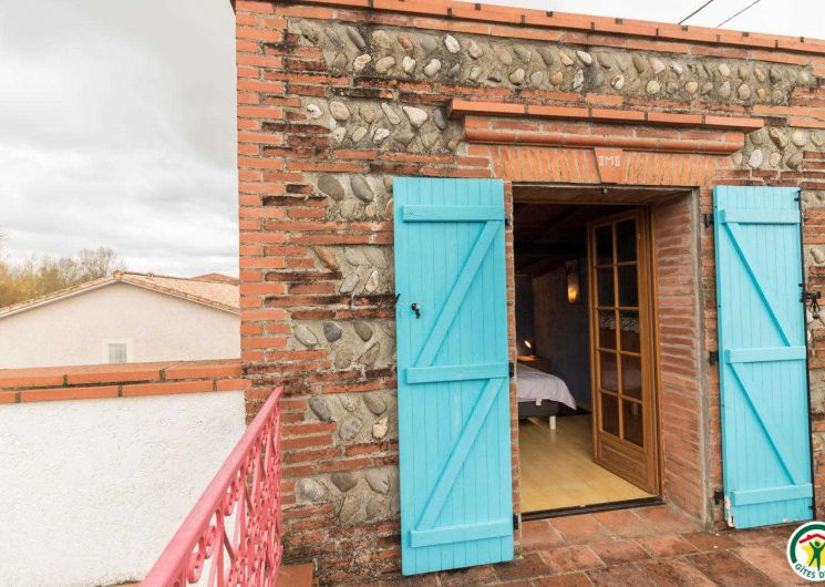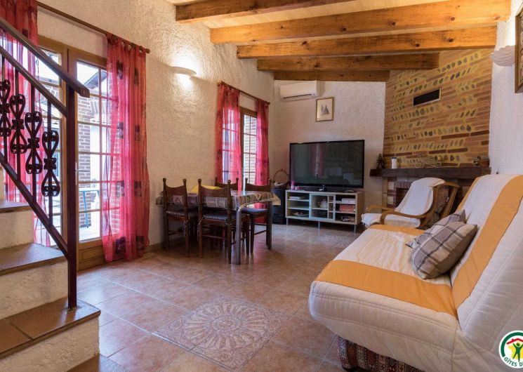 Petit gîte climatisé, tout en galets de Garonne, jardin clos, stationnement dans la cour (avec portail fermé). Au rez-de-chaussée : entrée dans le séjour (convertible 2 personnes), cheminée (Insert), coin cuisine, salle d’eau avec WC, terrasse donnant sur la piscine. A l’étage : 1 chambre mezzanine accessible par un escalier étroit (1 lit 2 personnes en 160cm) avec balcon/terrasse. Hauteur d’1m juste en haut de l’escalier puis possibilité d’être debout à plus d’1m80 dans la chambre. Chauffage électrique/climatisation compris. Gros chiens non admis.