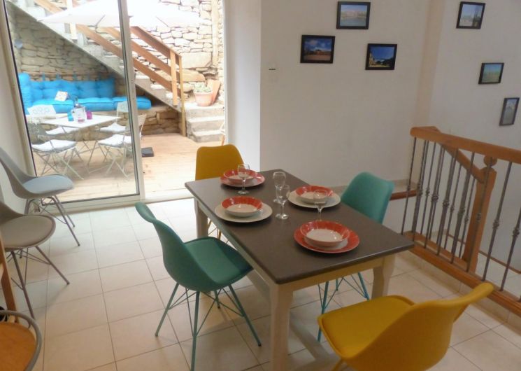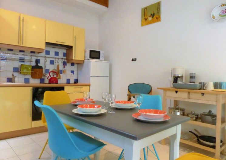 Dans une maison de maître du XIXéme siècle typique de la région, découvrez ce spacieux gîte de 85m²avec patio terrasse privé de 15m², accès au Spa sur la grande terrasse (partagée avec les propriétaires). Au premier étage, l’espace de vie de 40m² vous offre un coin salon confortable avec canapé lit ( 2 couchages) télévision, un coin lecture, la pièce est lumineuse et aérée. La cuisine est colorée et agréable, vous y trouverez tout le nécessaire pour cuisiner, plaque à induction, frigo avec partie congélation, bouilloire, cafetière capsules et traditionnelle, appareil à raclette et crêpière, lave vaisselle , micro ondes.. Elle donne directement sur la terrasse (large baie vitrée avec volet électrique), vous pourrez prendre vos petits déjeuners et repas à l’ombre du parasol. Une suite parentale avec salle de bains et WC. La literie 140×190 est récente et confortable, table de bureau, fauteuil, accès direct à la salle de bains qui comprend une grande douche, WC. La 2éme chambre est composée de 2 lits jumeaux de 90×200, meuble de rangement. Le gîte a un WC indépendant avec lavabo. Vous avez accès au Spa de mi avril à mi octobre en fonction des conditions climatiques, il se trouve sur la terrasse des propriétaires, à partager avec eux en toute discrétion. Une machine à laver le linge est à disposition. Dans le village vous trouverez une boucherie fromagerie avec dépôt de pains, épicerie, pharmacie, médecin ; infirmières. A moins de 10 km vous trouverez 2 moyennes surfaces avec vente de carburant, prise pour voitures électriques. La région est riche en patrimoine et activités diverses qui saura satisfaire les amateurs de marche, de vélo, entre mer et montagne. Parking fermé pour vélos ou motos.
