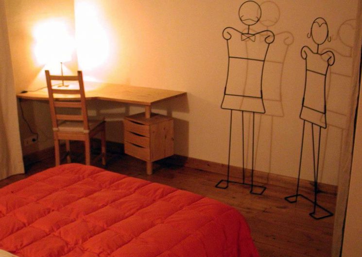 AGENCEMENT : rez-de-chaussée : entrée sur séjour avec coin-cuisine et coin-salon, 1 chambre (2 lits simples en 90cm ou jumelés) avec mezzanine aménagée, salle d’eau et wc privatifs. Étage : 1 chambre (1 lit double en 140cm) salle d’eau et wc privatifs. Lave-linge, sèche-linge, vélos communs aux 2 gîtes. EXTÉRIEUR : terrasse privative, barbecue individuel, plancha, jardin arboré et parking en commun aux 2 gîtes.