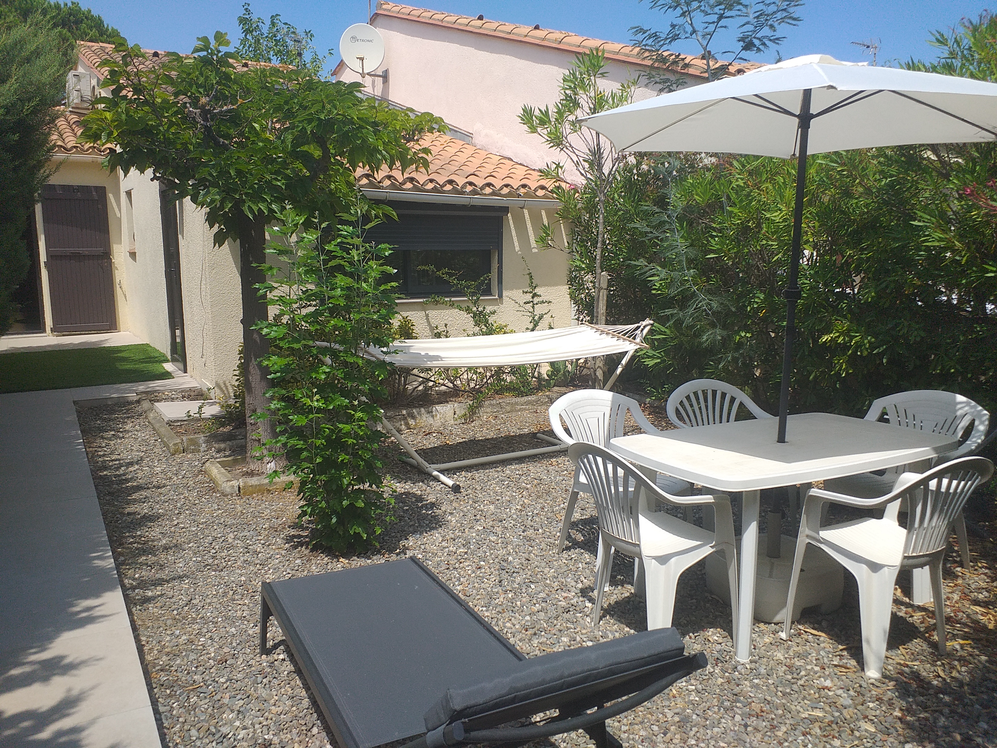 Belle maison de vacances de type T3, + salon avec clic-clac, entièrement rénovée dans un style contemporain. Cette maison ensoleillée est dotée de la climatisation et est composée d’un séjour, d’un salon ainsi que de 2 chambres dont une en mezzanine. Elle dispose aussi d’un beau séjour cuisine équipé, d’une salle d’eau avec douche italienne, WC séparé, d’un garage, d’un parking privé et de 2 jardins : un à l’avant et un autre à l’arrière de la maison. Nos amis les animaux sont acceptés.