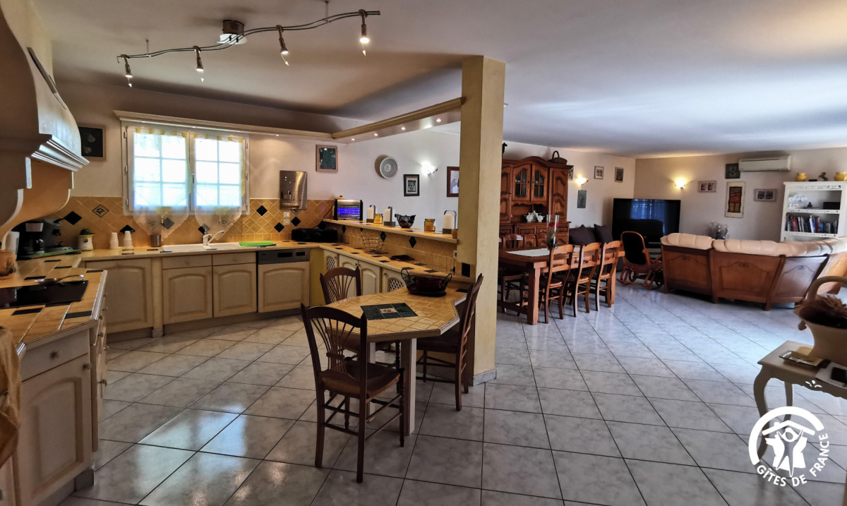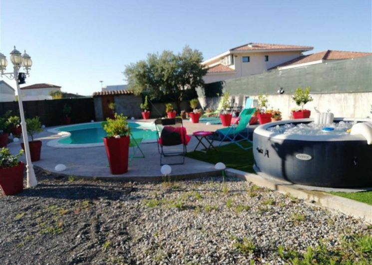 Plain-pied en rez-de-chaussée surélevé : cuisine, salle de séjour, salon, Chambre 1 (2 lits 90X190), Chambre 2 (1 lit 140X190) avec salle d’eau privative, salle de bain indépendante, wc. 1er étage : Chambre 3 (1 lit 140X190), salle d’eau, wc. Chauffage électrique/climatisation inclus. Draps, linge de toilette et ménage de fin de séjour en option. Possibilité de couchage supplémentaire dans la pièce à vivre. Profitez de l’espace extérieur : Grande terrasse de 80 m² avec salons de jardin, piscine ouverte de mai à septembre (8,80X4,75-prof. 1,60 max), jacuzzi privatif, barbecue, parking clos. Superficie de l’hébergement : 140 m². ATTRAITS TOURISTIQUES : Saint-Guilhem-le-Désert, grottes de Clamouse, le Cirque de Mourèze, Villeneuvette (ancienne manufacture royale), Saint Jean de Fos (village de potiers), Pézenas (ville d’art), le Lac du Salagou.