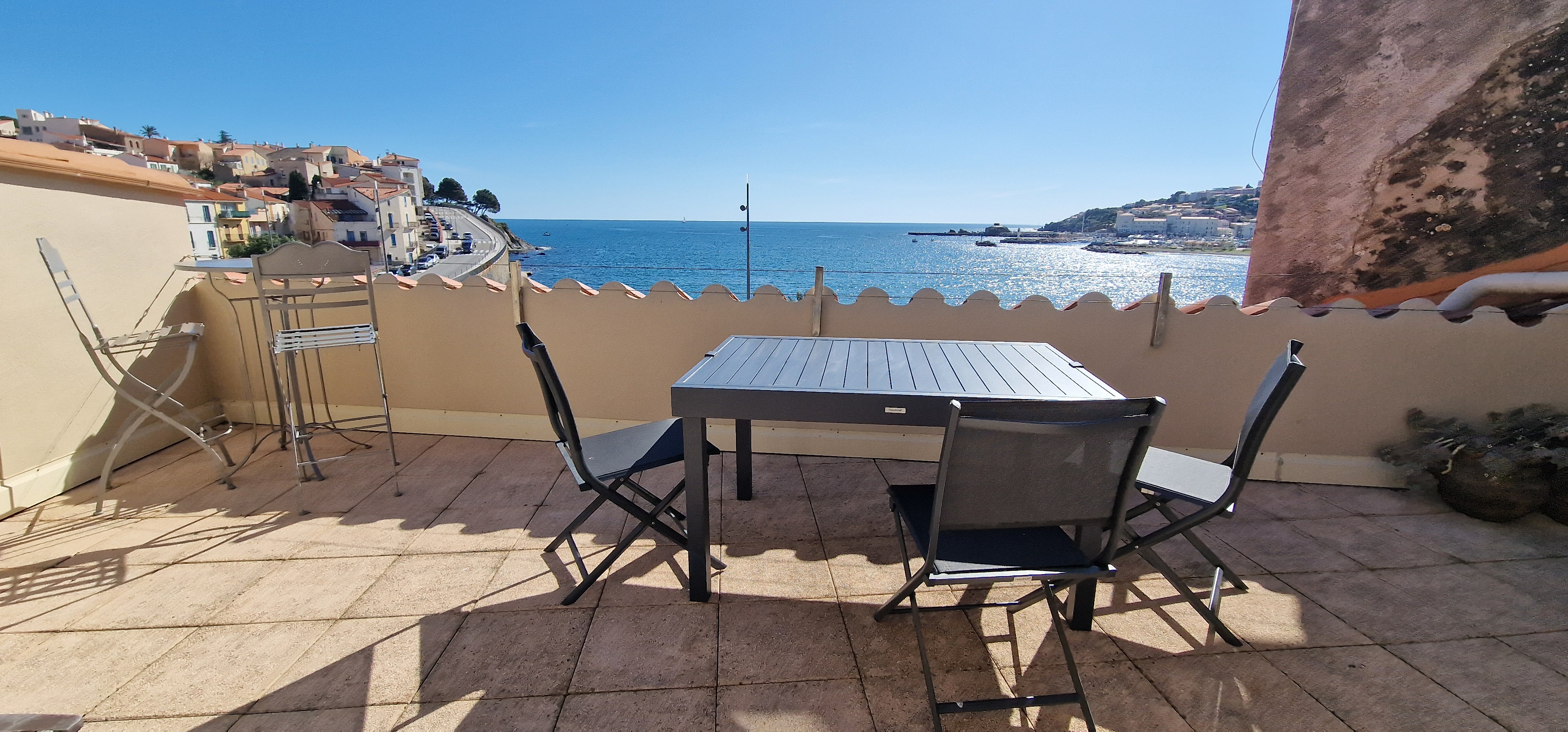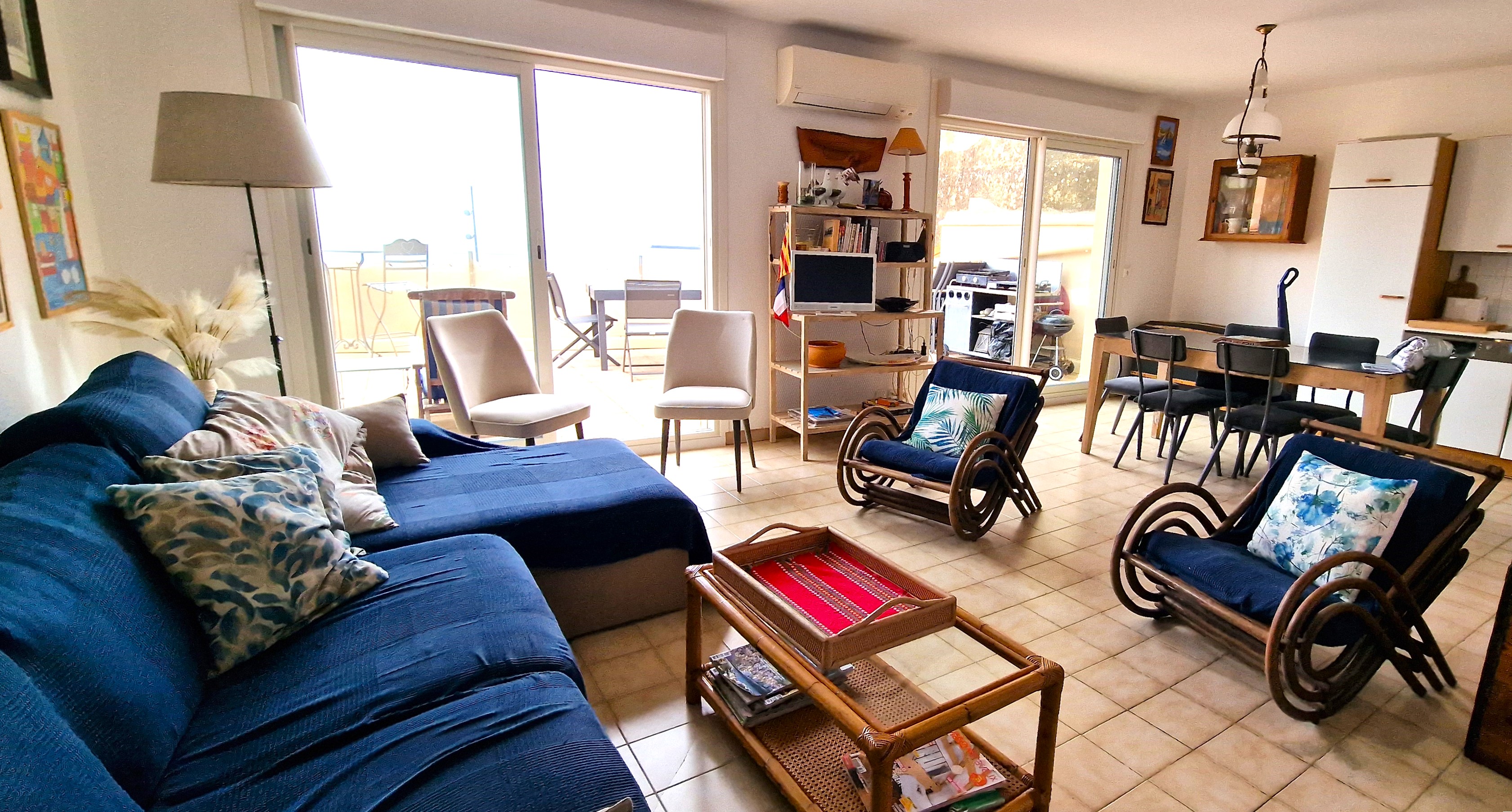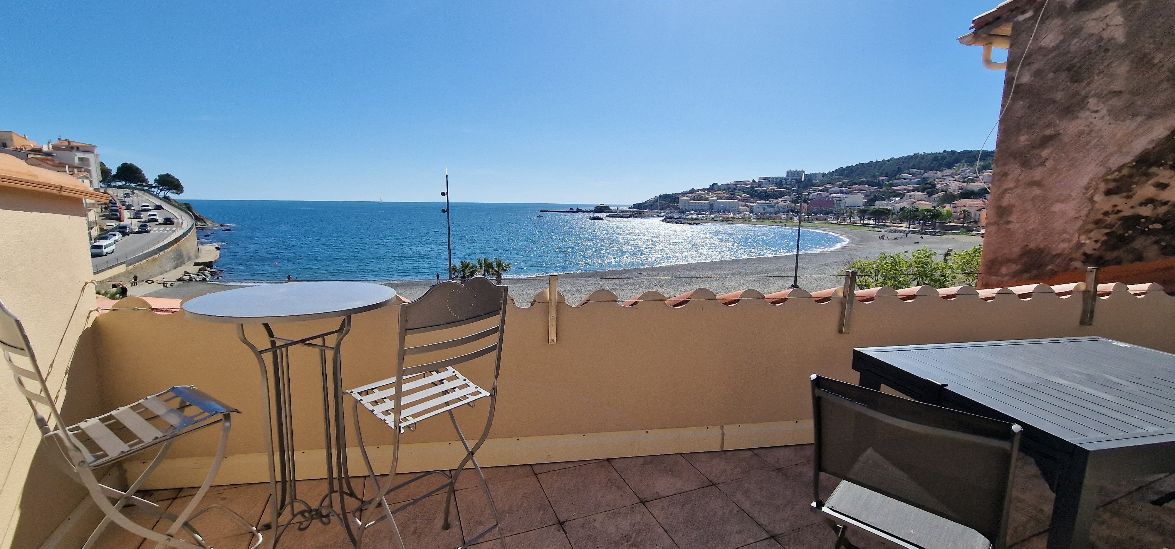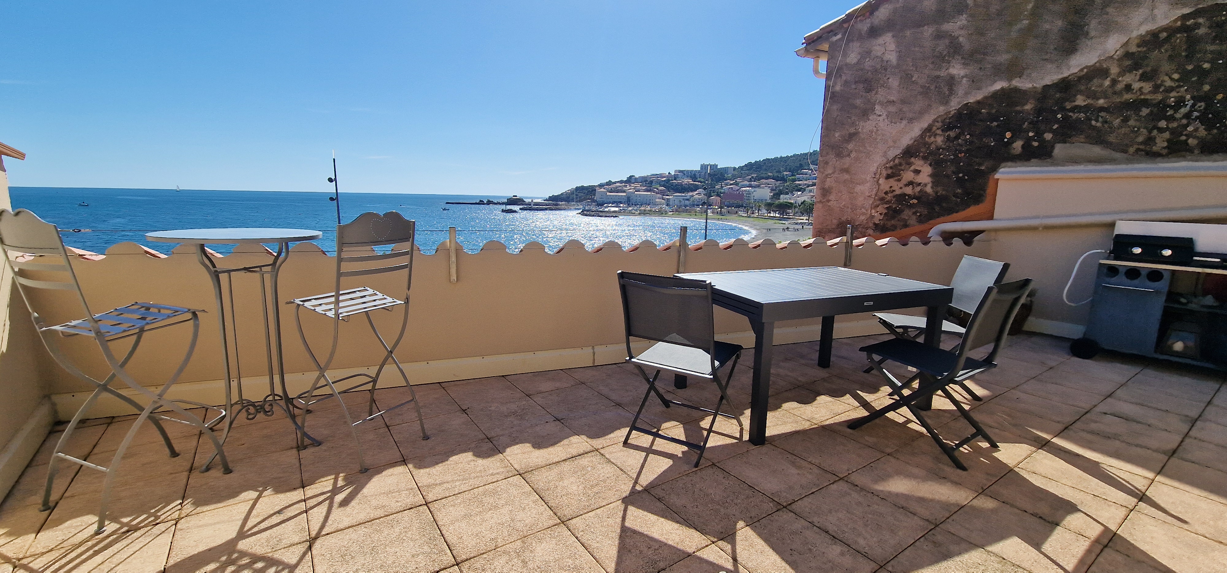 Appartement au 3ème et dernier étage d’un petit immeuble en face de la plage. Très bien exposé avec deux terrasses (côté mer et côté montagne). Un garage fermé dans un parking privé complète ce bien.
