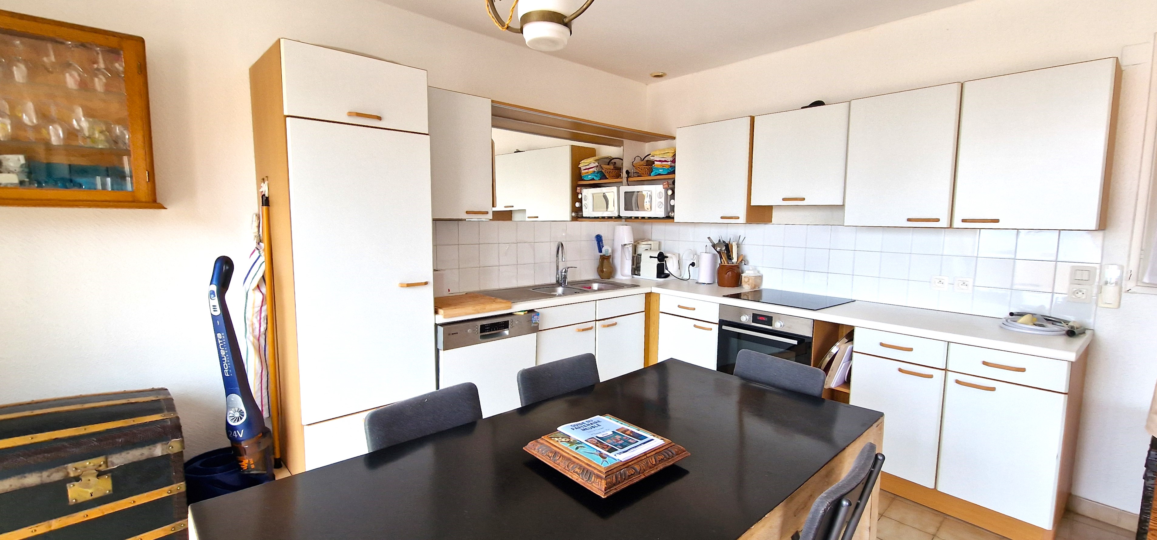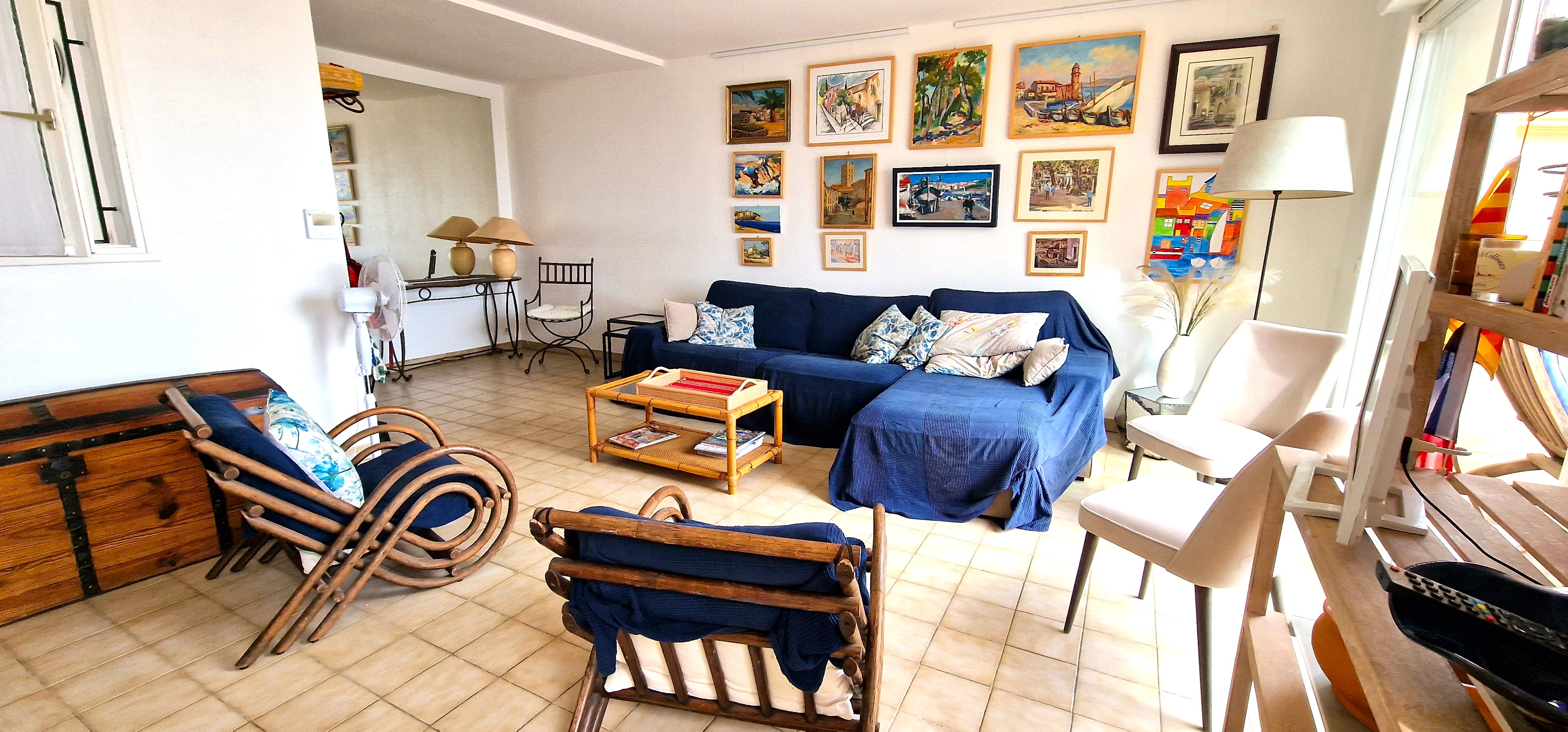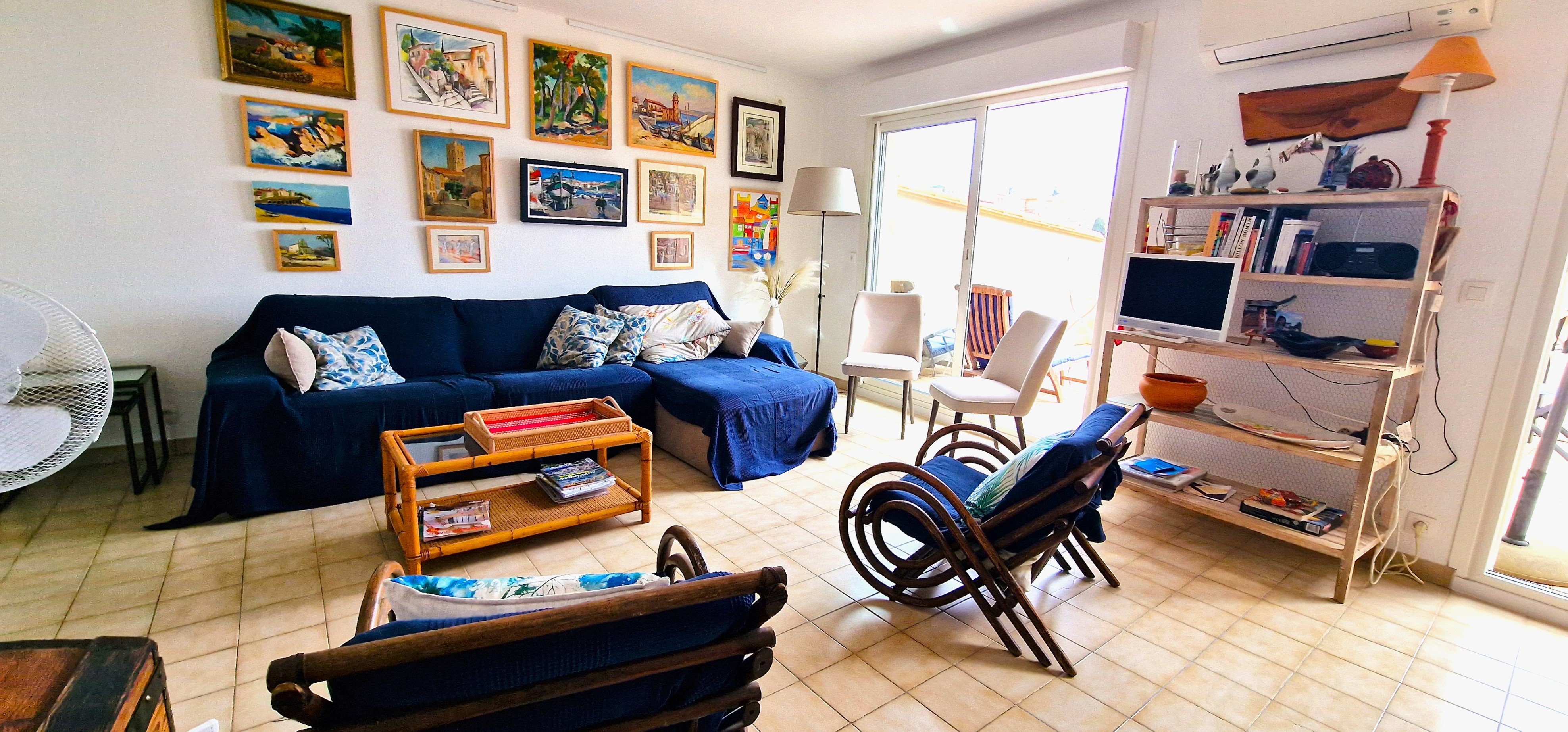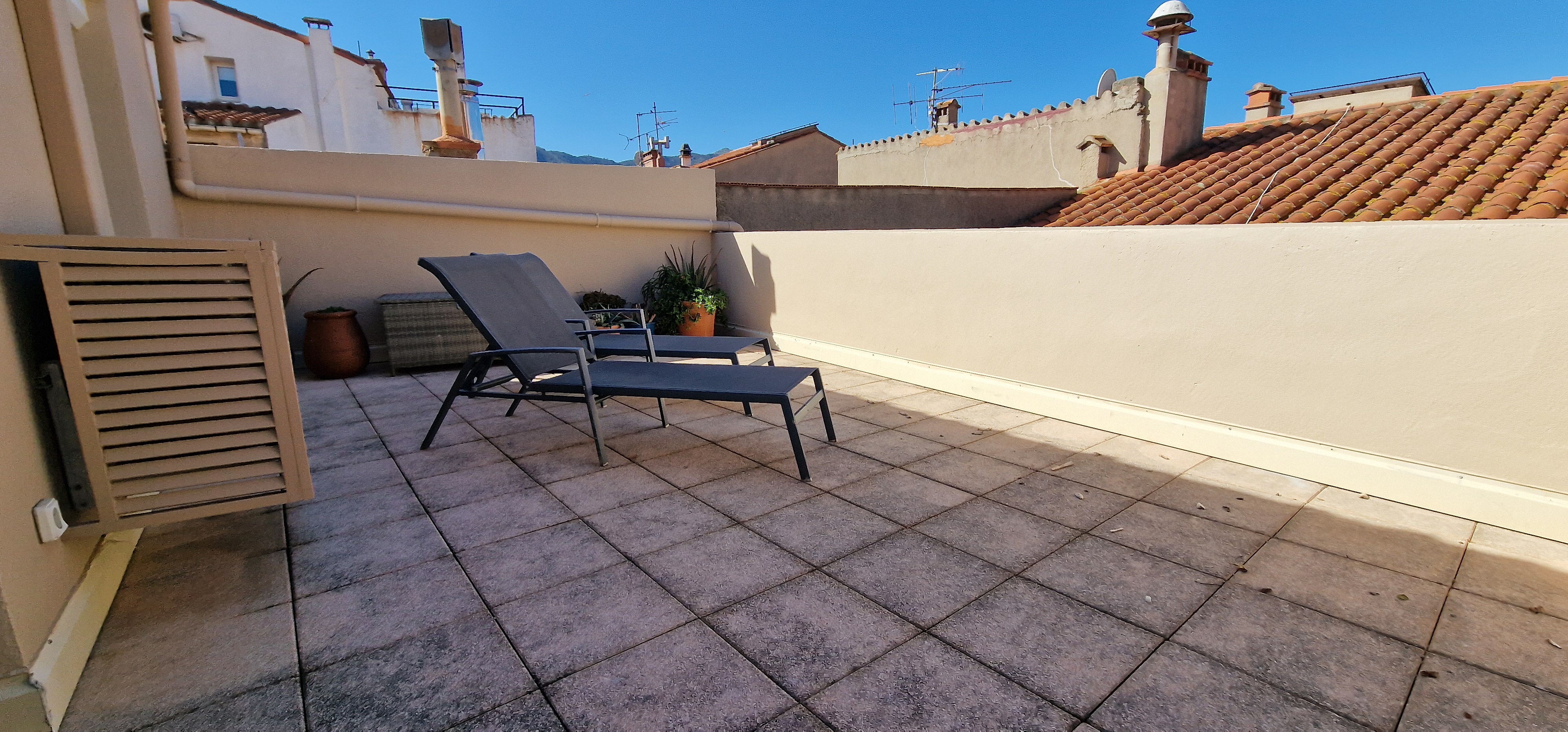 Appartement au 3ème et dernier étage d’un petit immeuble en face de la plage. Très bien exposé avec deux terrasses (côté mer et côté montagne). Un garage fermé dans un parking privé complète ce bien.