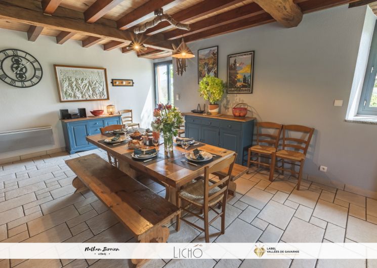 Maison de 170 m² à étage comprenant : Rez-de-chaussée, une cuisine équipée ouverte sur salle à manger et salon avec cheminée, une chambre (1 lit en 160), une salle d’eau (douche), un WC indépendant, et un cellier/buanderie (local à skis, vélos). À l’étage, 2 chambres (l’une avec 3 lits en 90 + 1 lit en 140 et l’autre avec 1 lit en 140 +1 lit en 90 et un lit bébé), une salle d’eau (douche) avec WC et une mezzanine avec salon, bureau, bibliothèque et jeux. La location bénéficie d’une grande terrasse avec vue sur les montagnes, barbecue, salon de jardin et transats. À savoir : système de chauffage par pompe à chaleur réversible et insert (bois fourni pour la flambée du soir).