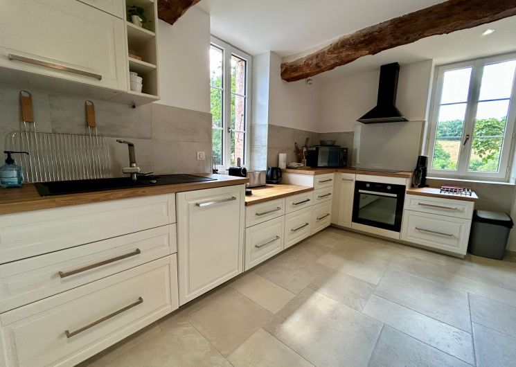 Betamy est une authentique maison gersoise, alliant charme traditionnel et confort moderne. Entièrement rénovée, elle offre des volumes spacieux et une vue imprenable sur la campagne environnante et l’église d’Espaon. Son intérieur chaleureux et fonctionnel, avec des espaces de vie conviviaux et une cuisine entièrement équipée pour cuisiner comme à la maison. Profitez de la piscine pour des baignades rafraîchissantes, ou installez-vous sous le ciel étoilé pour des barbecues en bord de piscine. La grange, vaste et sécurisée, se transforme en terrain de jeux pour les enfants ou en espace détente pour les grands. Autour de la maison, la campagne s’offre à vous, entre balades, découvertes et farniente.