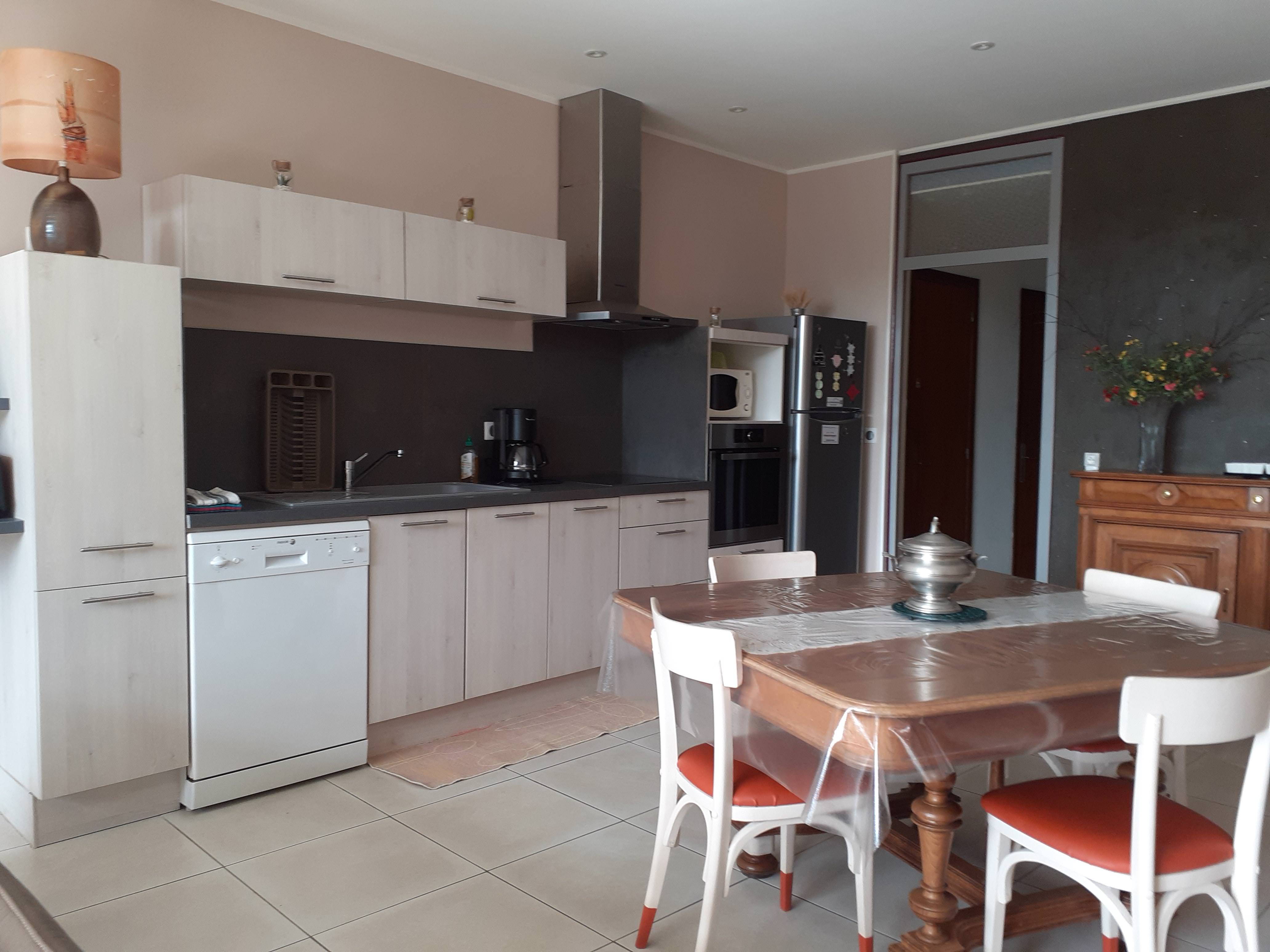 Au cœur du village, grand appartement en rez de chaussée, rénové déco contemporaine, tout confort, dans maison familiale ancienne.