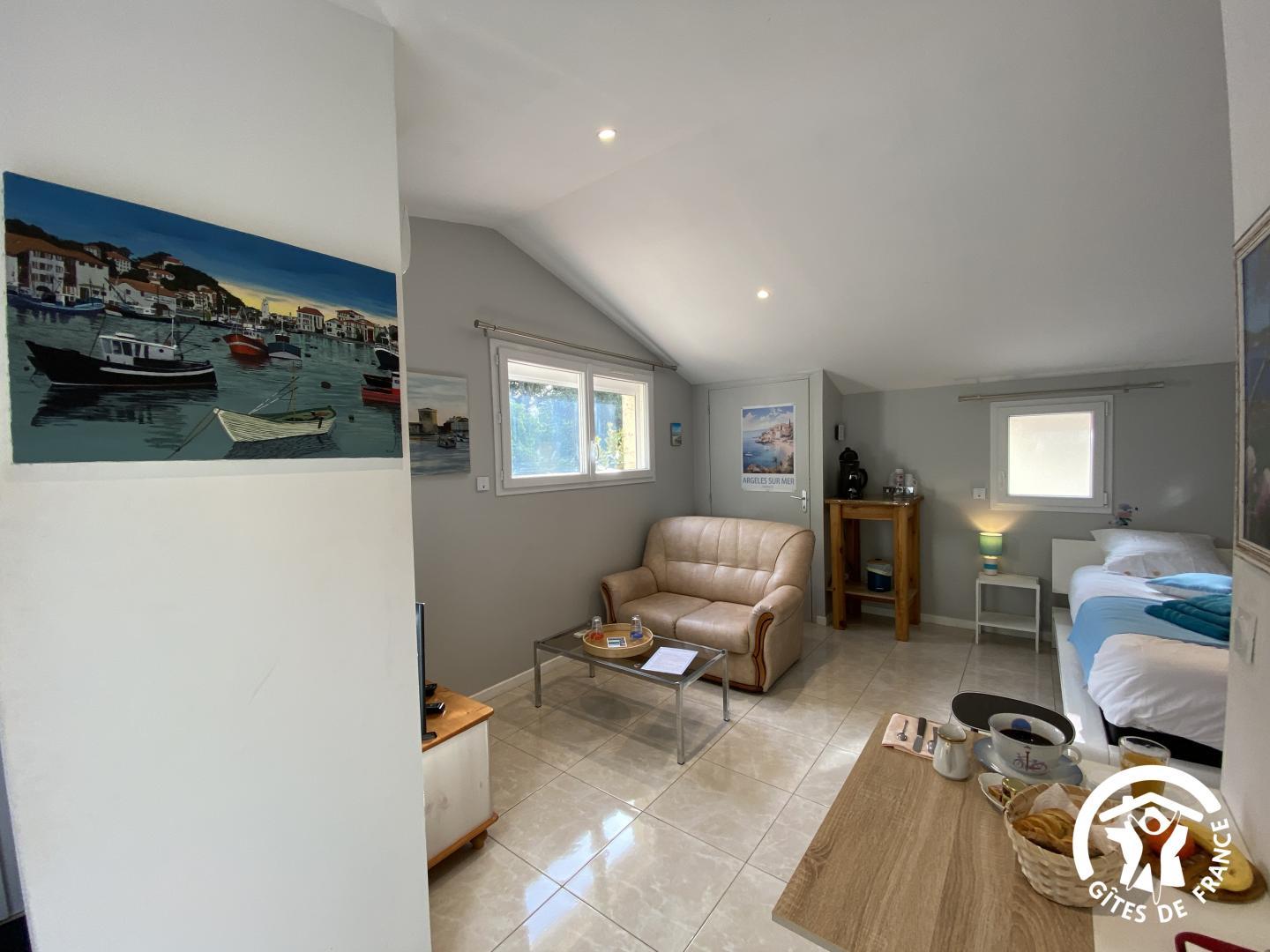 Séjournez dans l’une de ces deux chambres d’hôtes, situées aux portes de Céret, à 2 pas des chemins de randonnées et des pistes cyclables. Aux abords du village de Reynes, dans un quartier calme, cette propriété entièrement clôturée, arborée et fleurie de 3200 m² a été aménagée avec la résidence des propriétaires et une annexe composée de deux chambres d’hôtes mitoyennes, de plain-pied, avec entrée indépendante. De juin à octobre, en fonction de la météo, entre 10h et 19h, vous apprécierez de profiter de la piscine partagée de 9,5 x 4,5 x 1,20 à 1,70 m, clôturée avec portillon, et avec abri. Un coin détente commun avec salon de jardin et plancha est à votre disposition. Chaque chambre est équipée de sa terrasse privative non close avec salon de jardin. Dans la maison des propriétaires, à proximité immédiate des chambres, un coin kitchenette est à votre disposition, avec accès extérieur indépendant. Vous pourrez donc cuisiner (micro-onde, plaque à induction, vaisselle, etc).