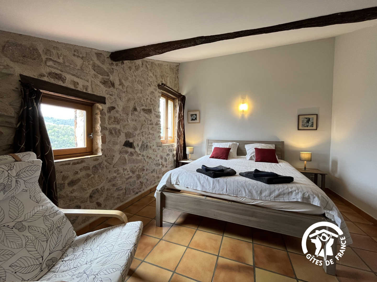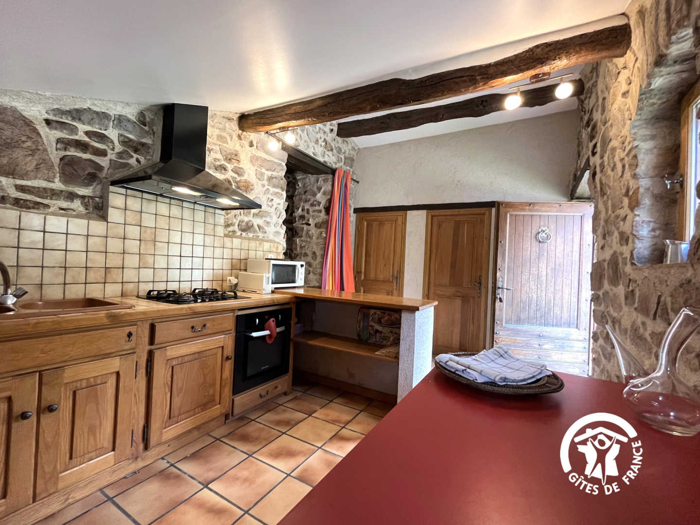 Cet ancien mas agricole isolé est situé sur une propriété de 100 hectares. Vous vivrez dans un écrin de verdure et dominerez la vallée dans une région de moyenne montagne au climat méditerranéen. Le dépaysement et le calme sont garantis, vous pourrez vous déconnecter du quotidien. Notre Mas ravira aussi les amoureux du calme et des balades, car dès votre porte d’entrée vous pourrez partir pour 3 balades différentes. Vous serez à 2 kilomètres de la frontière espagnole, à 43 Km de Figueres, 35 Km de Céret, à 30 mn de Prats de mollo et proche du massif du Canigou. (La mer et sa plage de sable fin sont à 60 Km). L’église Sainte-Marie, dans le petit village de Coustouges (à 800m), est un bijou de l’art roman qu’il faut absolument visiter. RDC Vous entrerez directement dans la cuisine complètement équipée, accès à la buanderie. 4 marches pour accéder au séjour et aux chambres. Le grand séjour a été aménagé pour mettre en valeur le caractère de la bâtisse