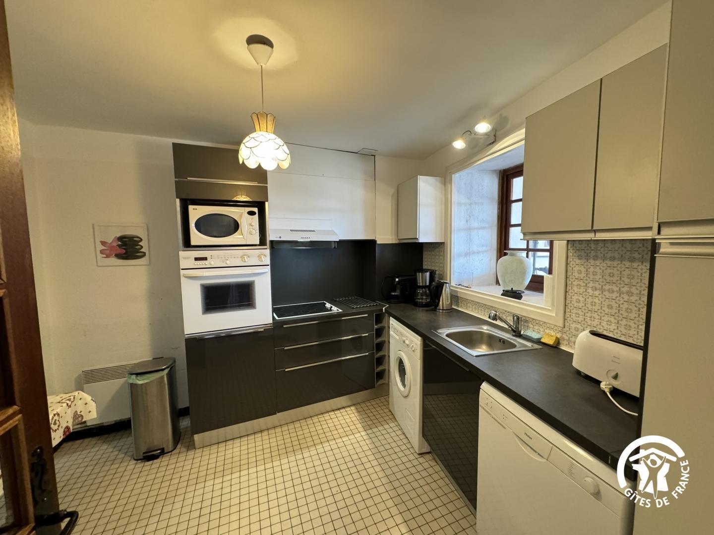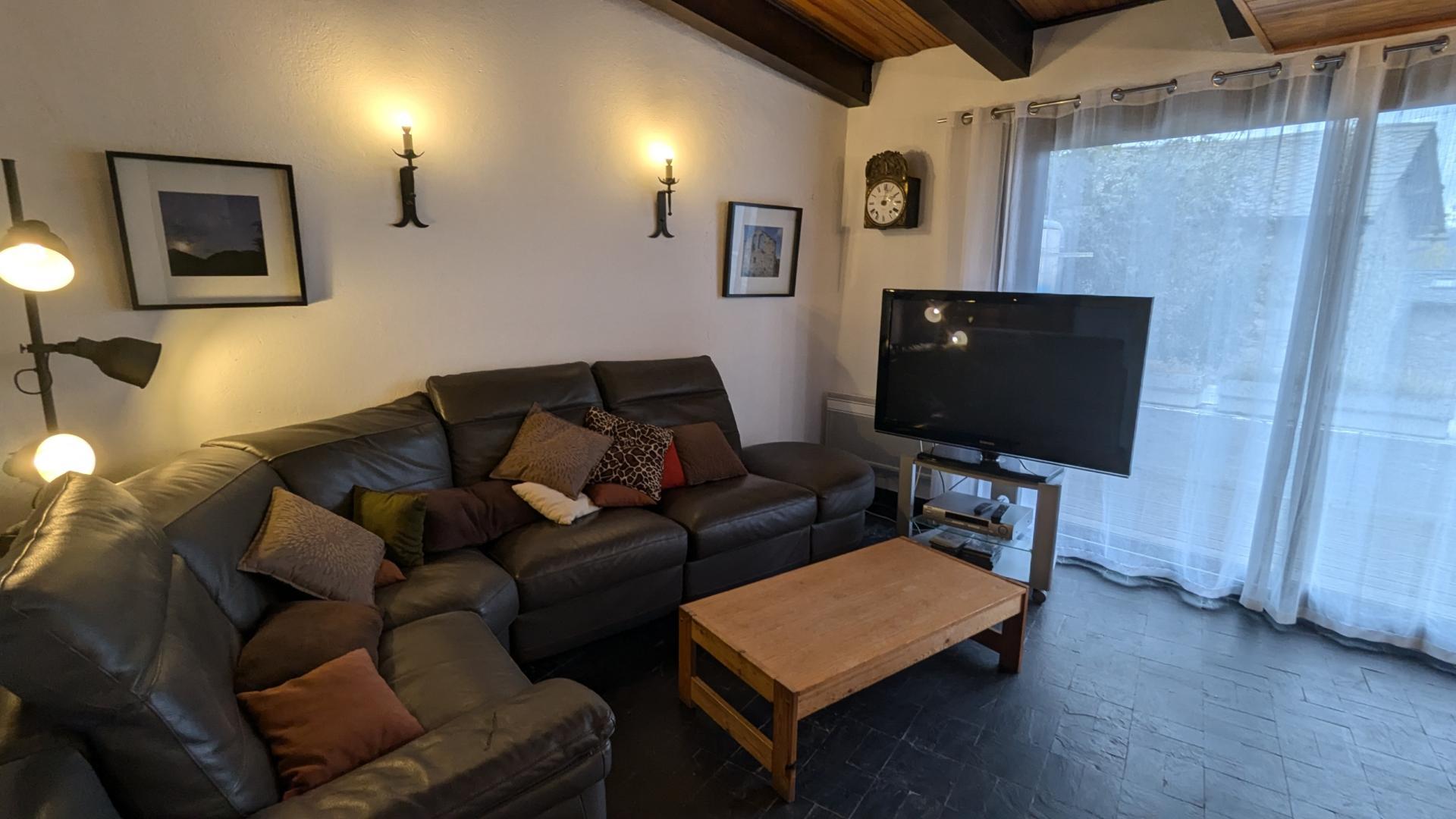 Maison de village comportant le gite au 1er niveau (accessible de plain-pied au nord) et la résidence du propriétaire au 2ème niveau. Pièce de jour avec téléviseur donnant sur terrasse (salon de jardin, planxa) Cuisine équipée avec congélateur, lave-vaisselle, micro-ondes Une chambre avec 2 lits 90 Une chambre avec 1 lit 140 Une chambre avec 1 lit 140 Salle de bains Wc Entrée commune équipée d’un meuble de chaussures et de rangement ski.