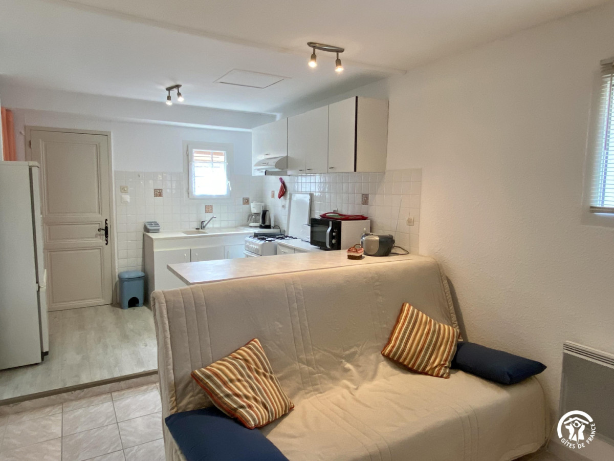 Gite attenant à la maison des propriétaires. Le village de Camplong est situé au pied du Massif de l’Alaric parcouru par de nombreux sentiers de promenade. L’abbaye de Lagrasse est à 15mn, et les chateaux du Pays Cathare à 45mn. Carcassonne à 40mn ainsi que les Plage de la Méditerranée. Vous profiterez de la terrasse mitoyenne au jardin des propriétaires avec salon de jardin et barbecue. Estivales de Camplong en juillet et aout, spectacles musique et theatre gratuit. Commerces et restaurant au village. Le gîte comprend: un séjour-cuisine avec canapé. Une chambre avec 1 lit en 140, Salle d’eau et WC. Chauffage électrique inclus. Accès à la piscine surveillée et au tennis municipal gratuits environ à 200m. Climatisation dans la pièce principale.