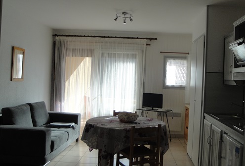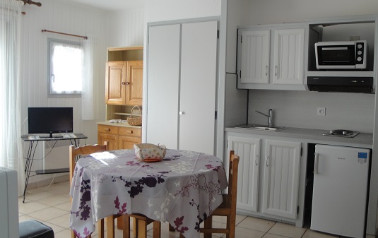 1 studio au Rdc. de plain pied, composé d’un séjour – 1 coin cuisine, 1 lit 2 pl., chauffage électrique