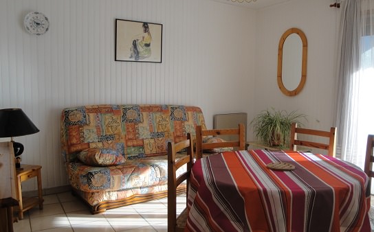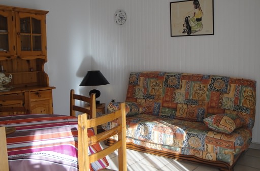 Appartement de plain pied, en RDC, bien exposé avec un séjour et un coin cuisine, une chambre avec un lit 2 places, balcon exposé Sud, chauffage électrique.