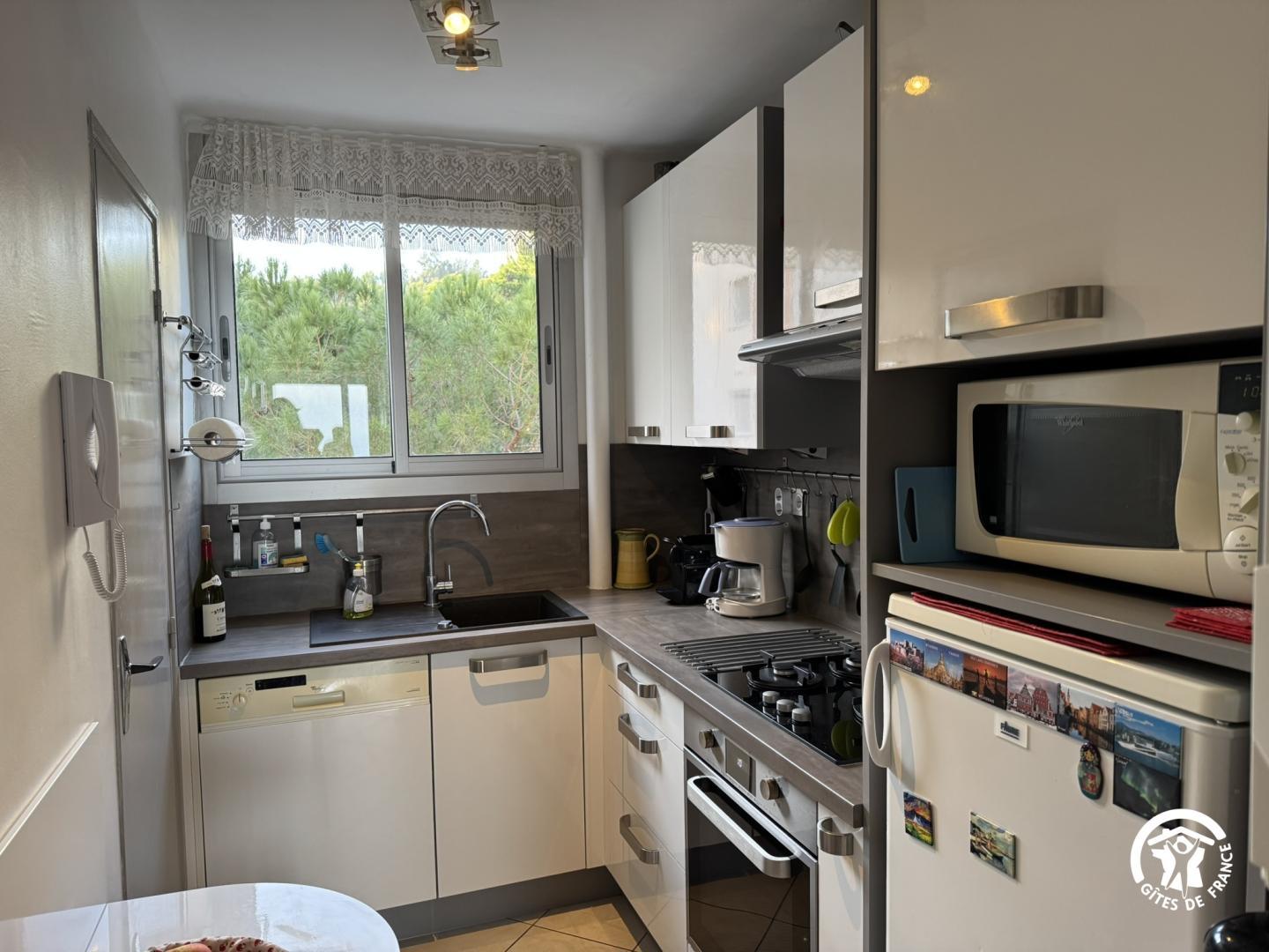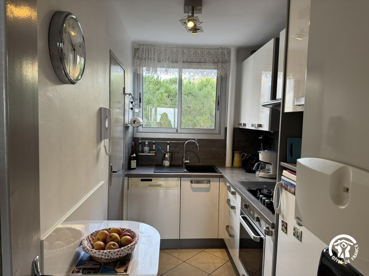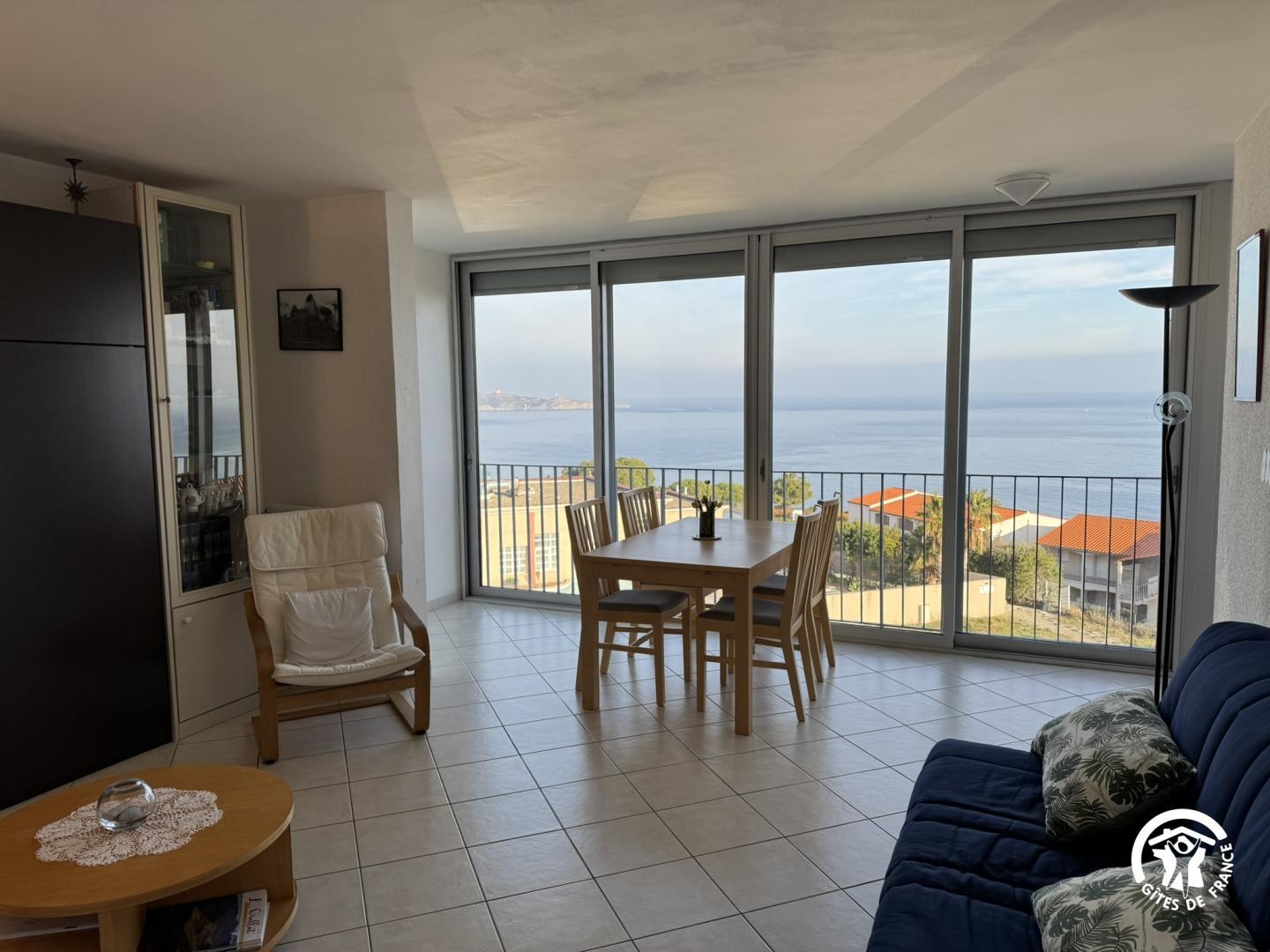 À deux pas des trésors de la Côte Vermeille, notre gîte vous ouvre les portes d’un territoire où nature, saveurs et découvertes se rencontrent. Ce gîte situé au troisième étage d’une résidence, à quelques minutes des commerces et restaurants, idéal pour 4 personnes, allie confort et authenticité : Cuisine séparée entièrement équipée : four, plaque 3 foyers à gaz, micro-ondes, bouilloire, cafetières filtre & Nespresso). Salon convivial avec lit escamotable 140×190 pour 2 personnes Salle à manger Salle d’eau avec douche Chambre avec lit double 140×190 WC indépendant. L’accès se fait par un escalier. La résidence est sécurisée par une barrière levante automatique et digicode. Il y a une place de stationnement dans la résidence. Deux ventilateurs sont à disposition. Navette gratuite toute l’année pour aller au village.