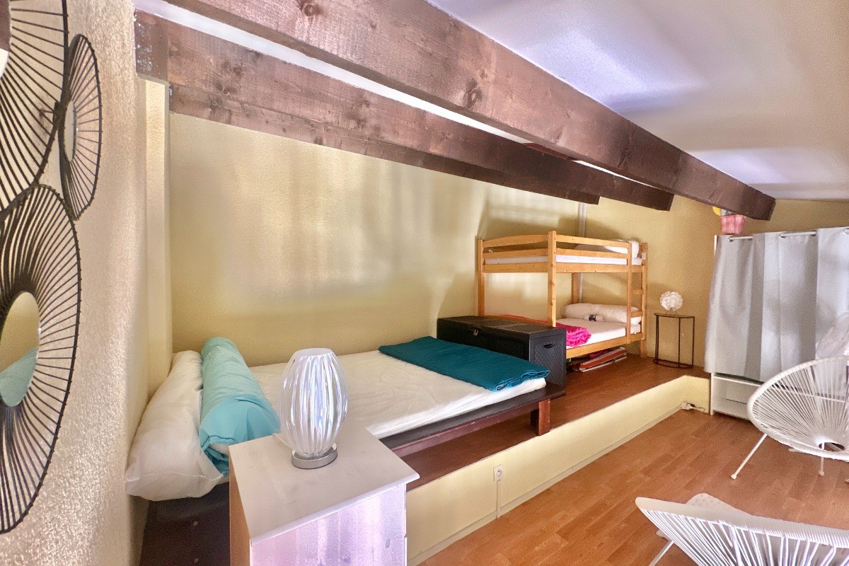 Cap d’Agde, deux pièces mezzanine de 40 m² avec terrasse situé au 1er et dernier étage sans ascenseur dans une résidence avec piscine et à 100 m de la plage ! Couchages : un lit double dans la chambre, un lit double et un lit superposés sur la mezzanine. Salle d’eau et WC séparés. Equipements : Télévision, lave-linge, lave-vaisselle, four, micro-ondes. PARKING N°B114. Référence agence : 172