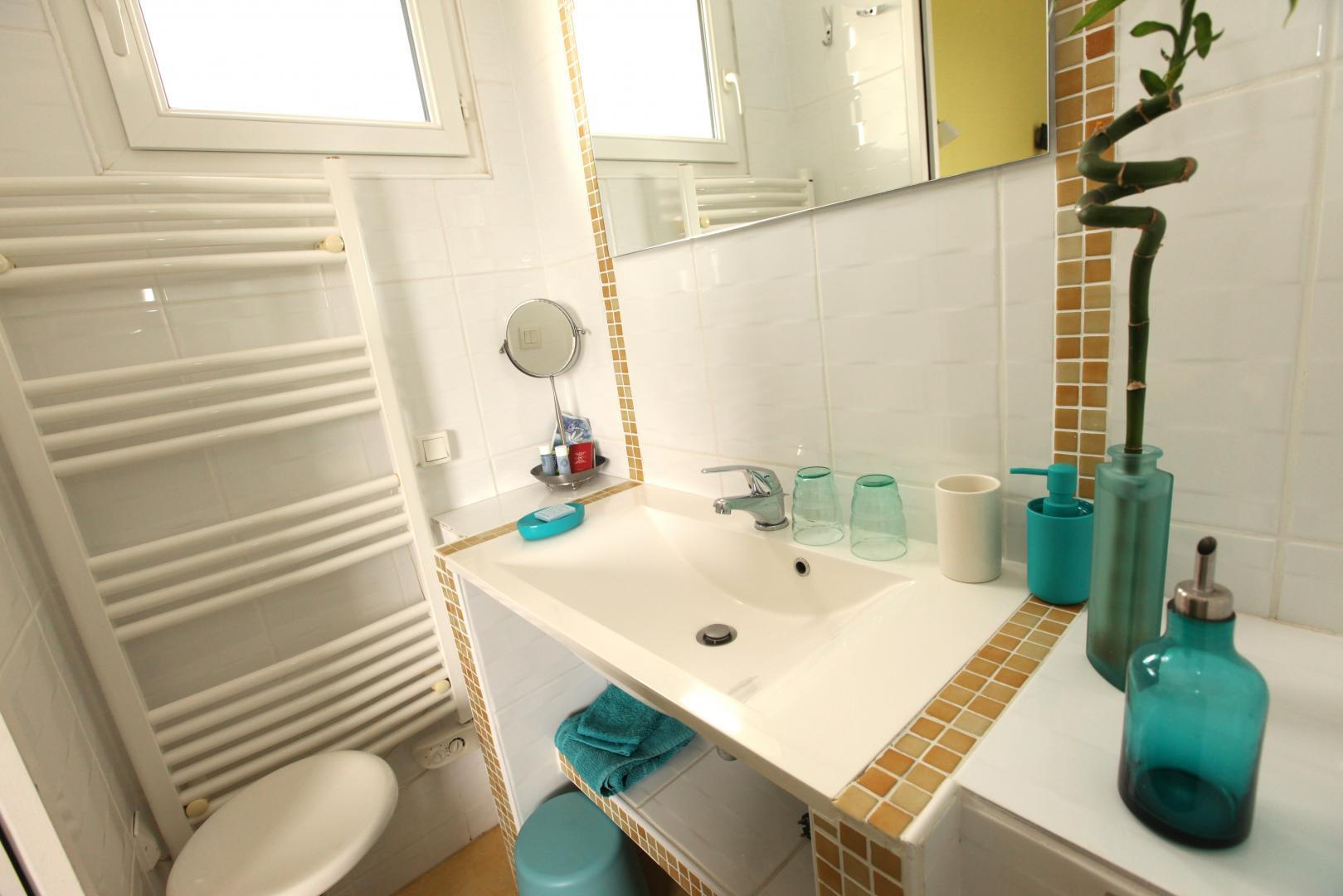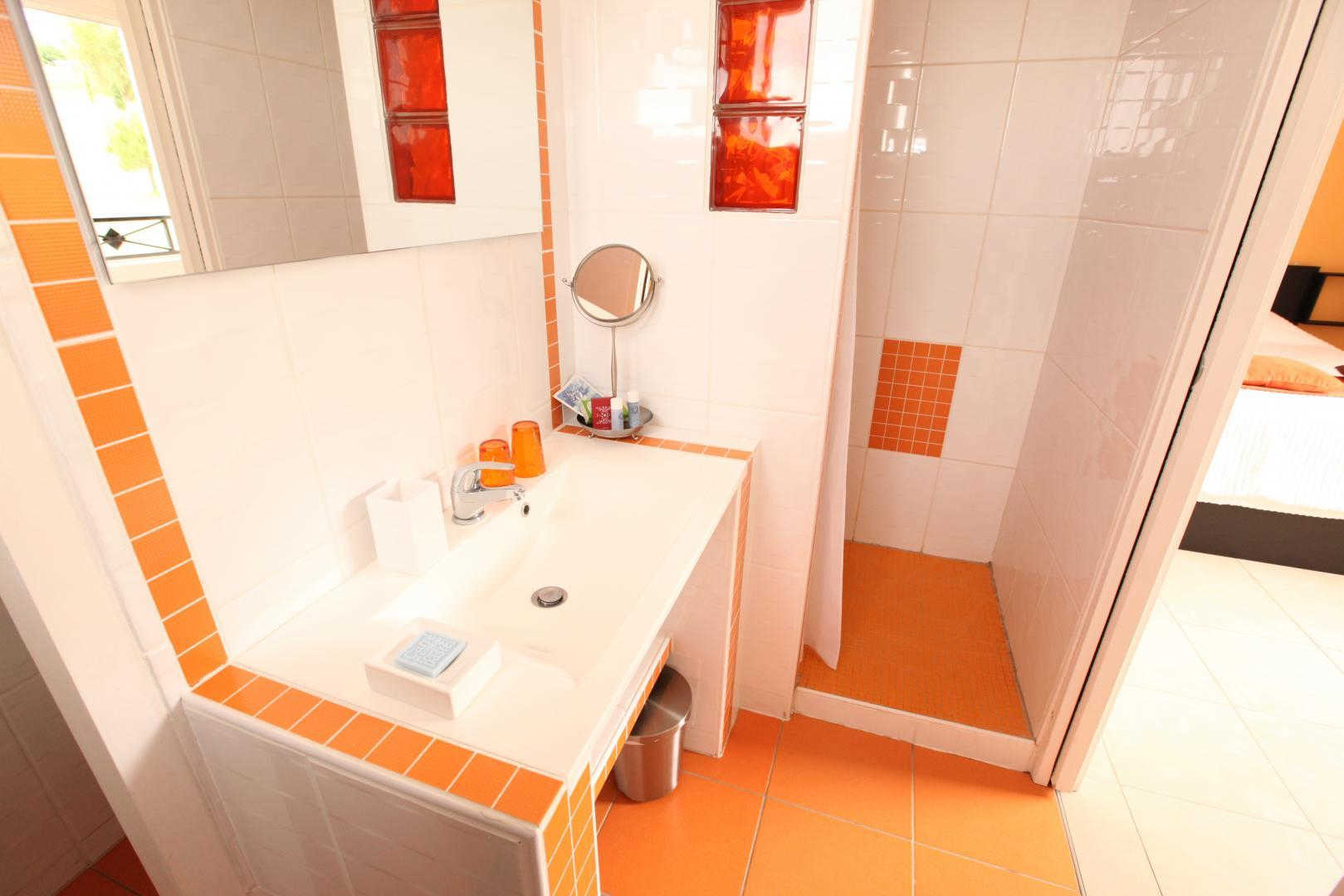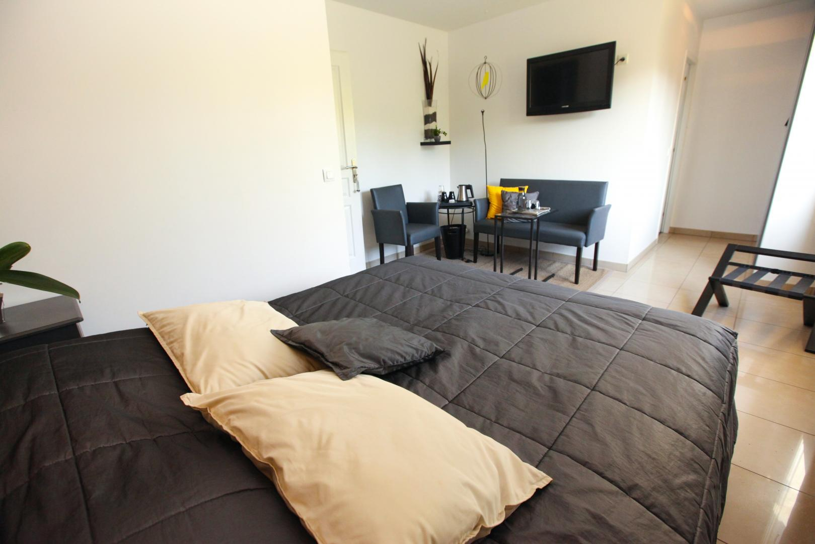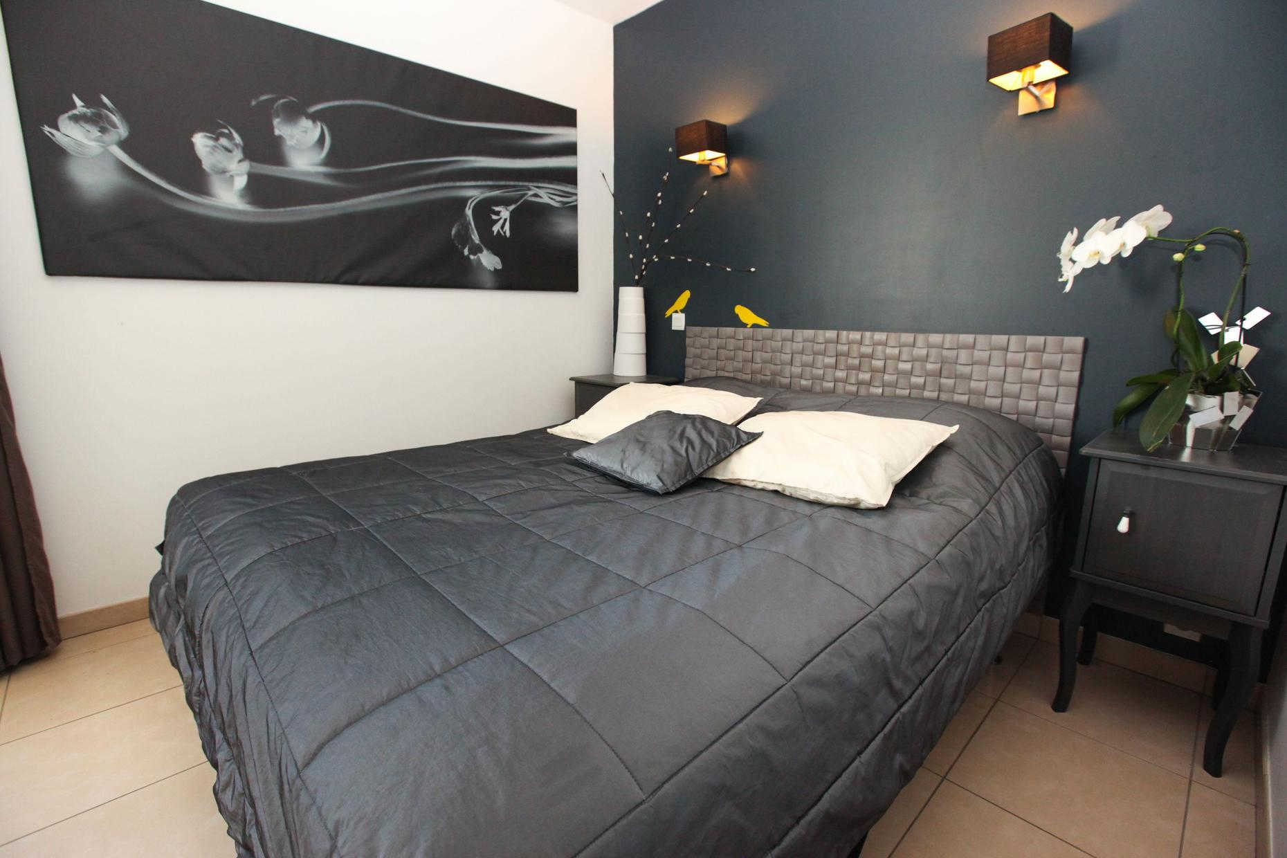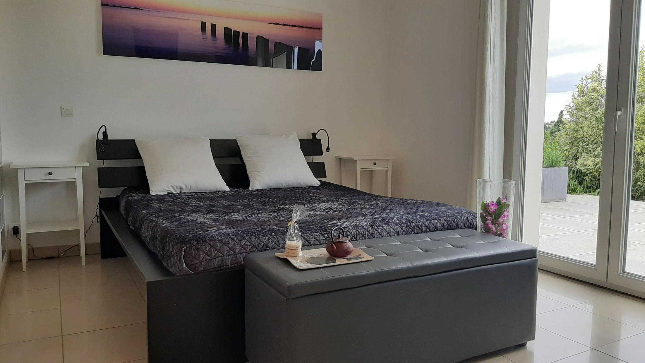 – au rez-de-chaussée donnant sur la terrasse : chambre Zen, classée 3 épis, avec un lit en 160×200 et son sanitaire privatif