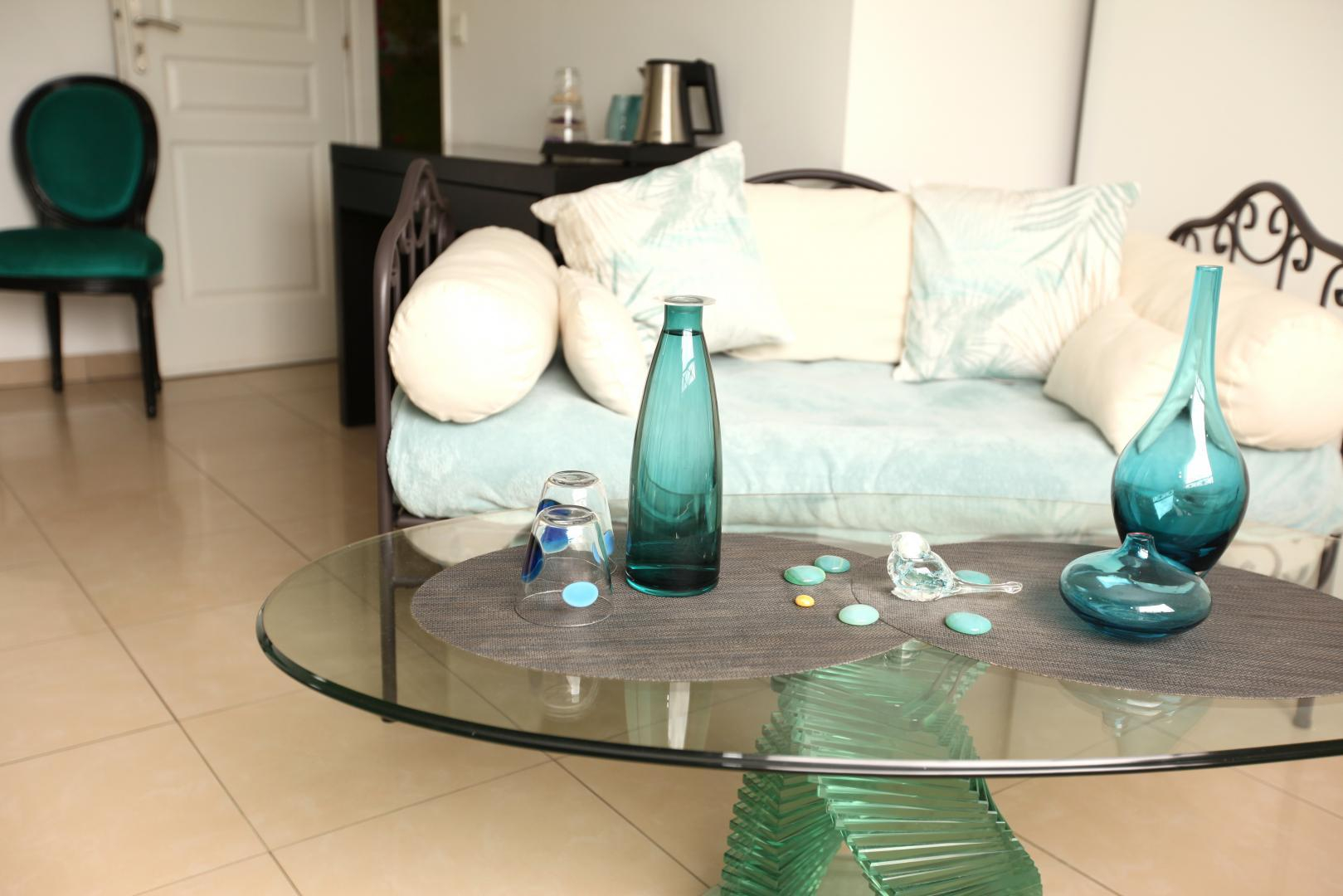 – les chambres d’hôtes Rêv’orange, Levantine, Paradis Blanc et Nocte, lumineuses, sont aménagées à l’étage. Elles disposent toutes de sanitaires privatifs et de lits 160×200 et 180×200 pour la chambre Nocte, avec vue panoramique. Chacune comprend un canapé ou un fauteuil et une TV écran plat.
