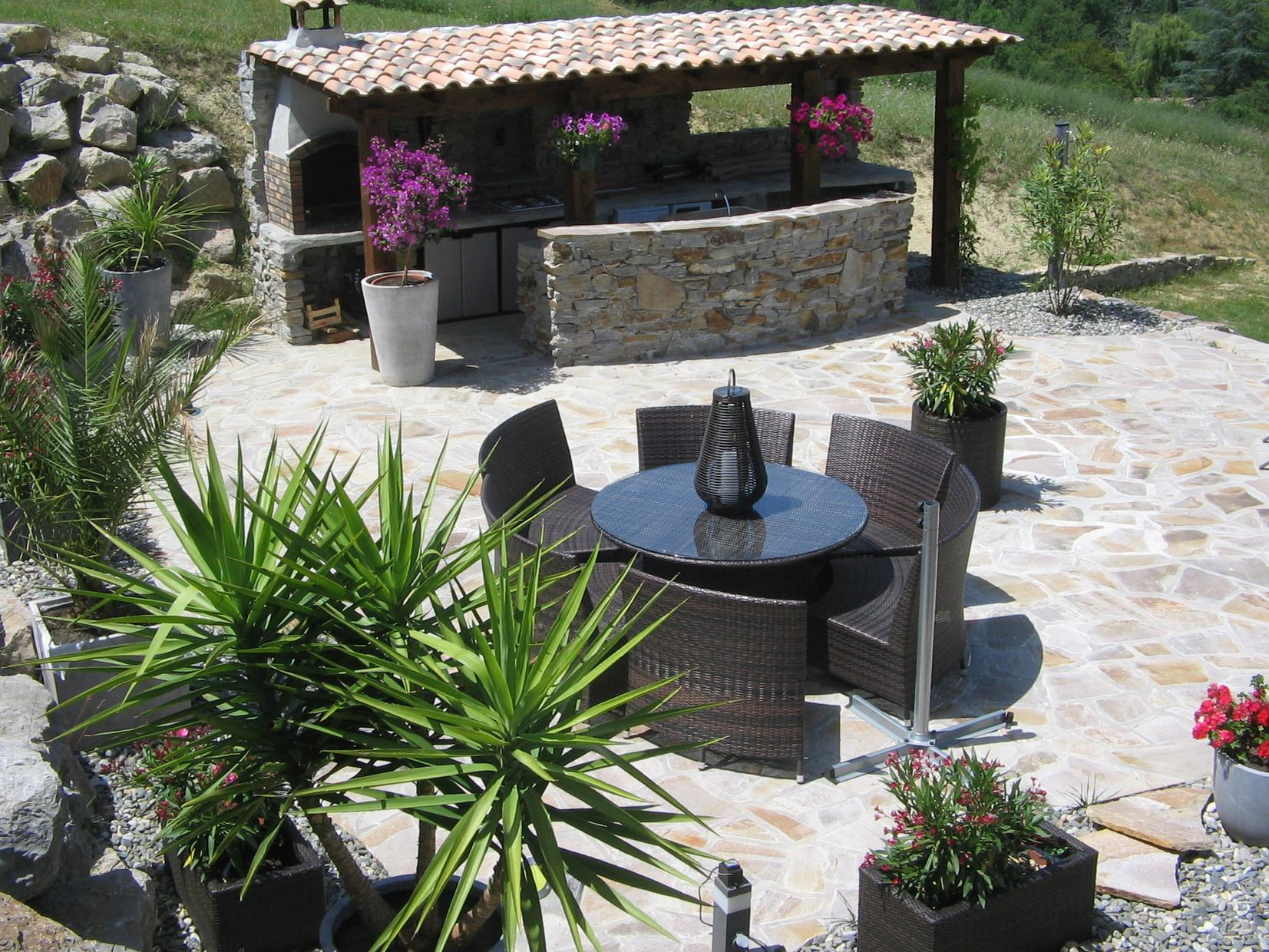 Pour vos repas, deux espaces sont à votre disposition : un très beau séjour végétalisé de 70 m² aux larges baies vitrées comprenant une cuisine entièrement équipée et réservée aux hôtes, et une cuisine extérieure également tout équipée avec un barbecue.