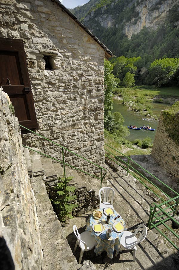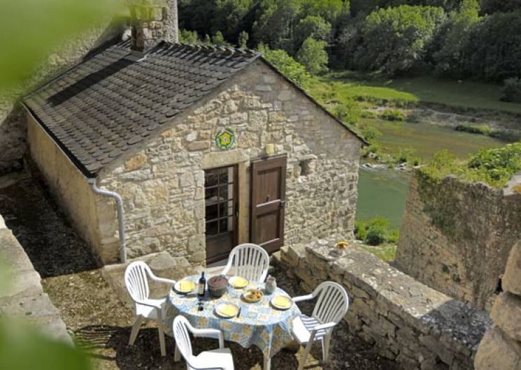 Maison située dans un ensemble de bâtiments, dans le site protégé des Gorges du Tarn. Plage privée, location de canoës. Séjour, coin cuisine (micro ondes), 1 lit 2 places, salle d’eau, WC. Cheminée, chauffage électrique, téléviseur, salon de jardin, barbecue, parking privé, terrain privé en bordure du Tarn. Opérateur Portable Bouygues Télécom, orange et SFR.