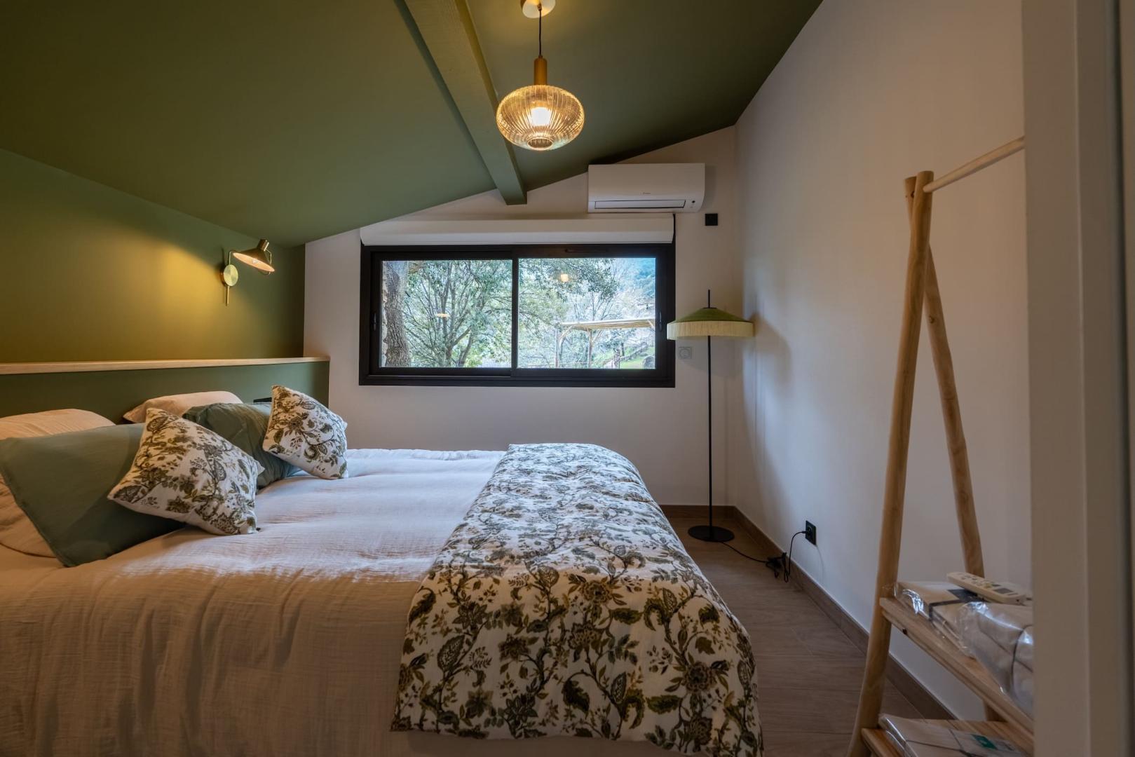 Dans le massif des Albères, sur une propriété de 25 ha offrant une vue imprenable sur la mer, ce mas catalan rénové comprend 4 gîtes indépendants, climatisés, personnalisés et dotés de terrasses privatives avec salon de jardin et plancha à gaz. Cuisine avec espace repas et salon donnant sur terrasse Une chambre : 1 lit 160 Une chambre : 1lit 160 Salle d’eau Wc Jardinet privatif non clos. L’accès se fait par une piste de terre de 7 km avec quelques ornières.