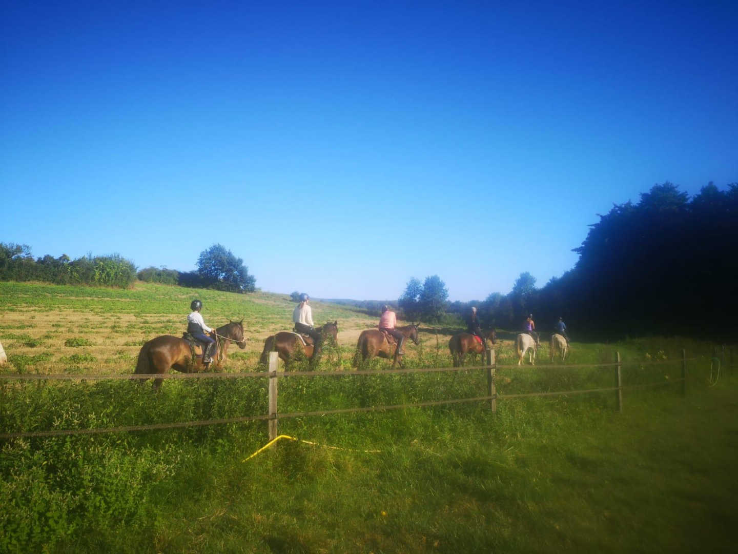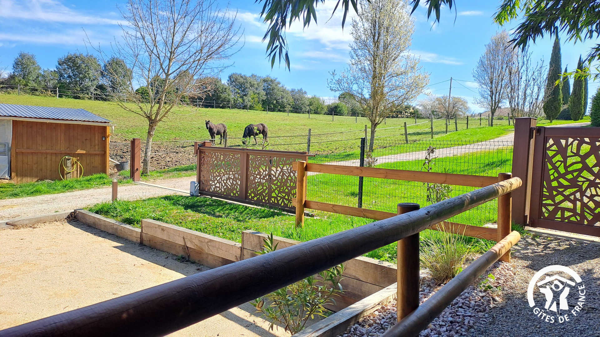 A l’extérieur : espace barbecue, plancha et table devant le gîte. Autour de la maison, 2 hectares de jardin/ terrain partagé avec les propriétaires et leux chevaux. Terrain de pétanque à côté du parking, à l’entrée de la propriété.